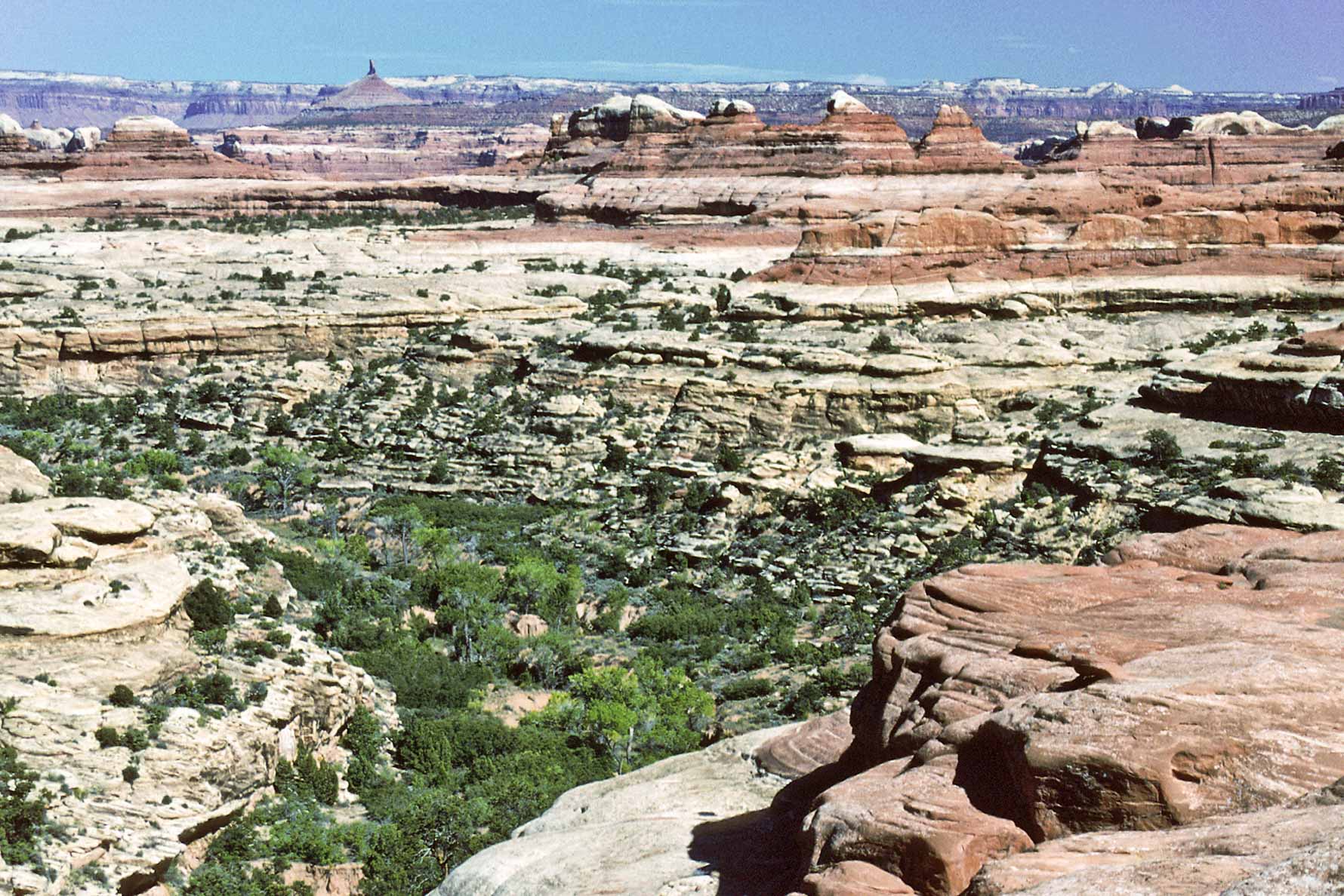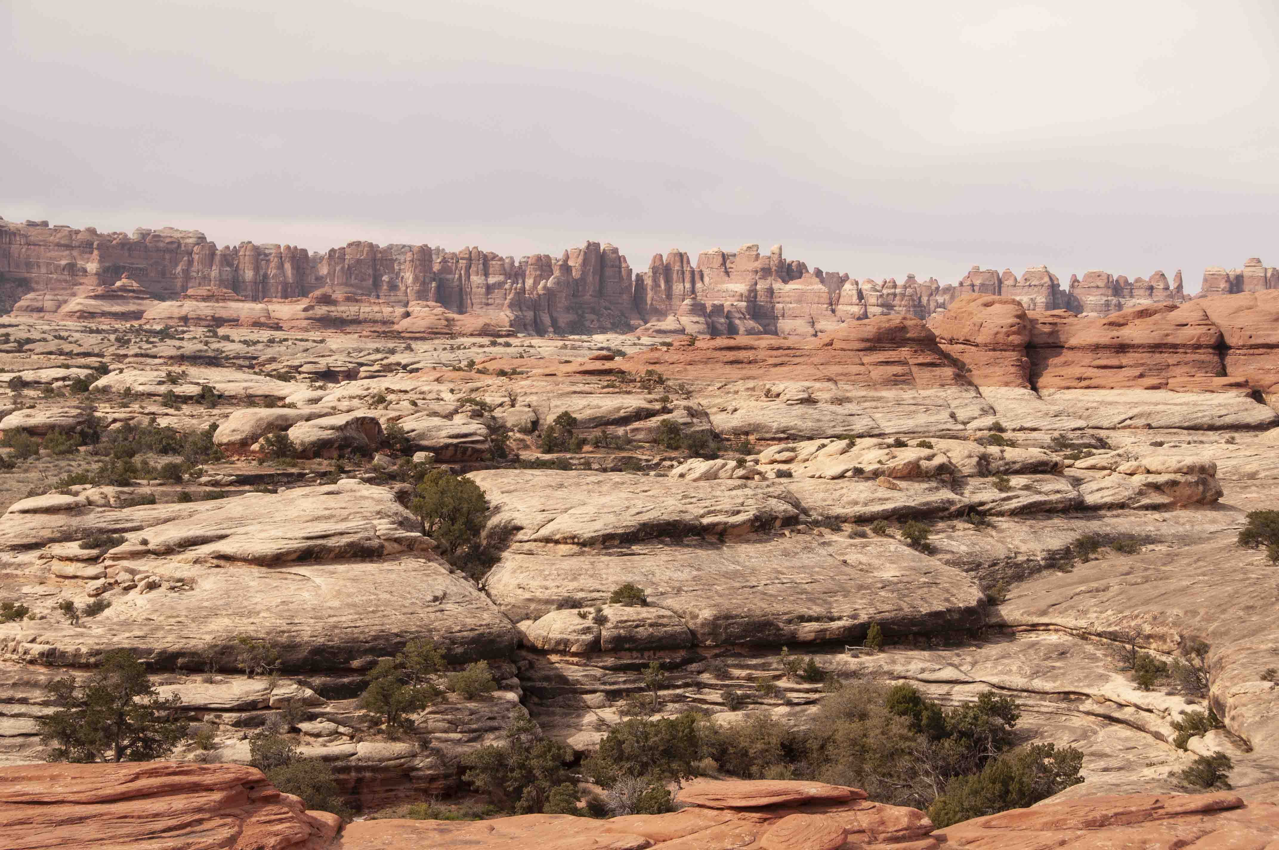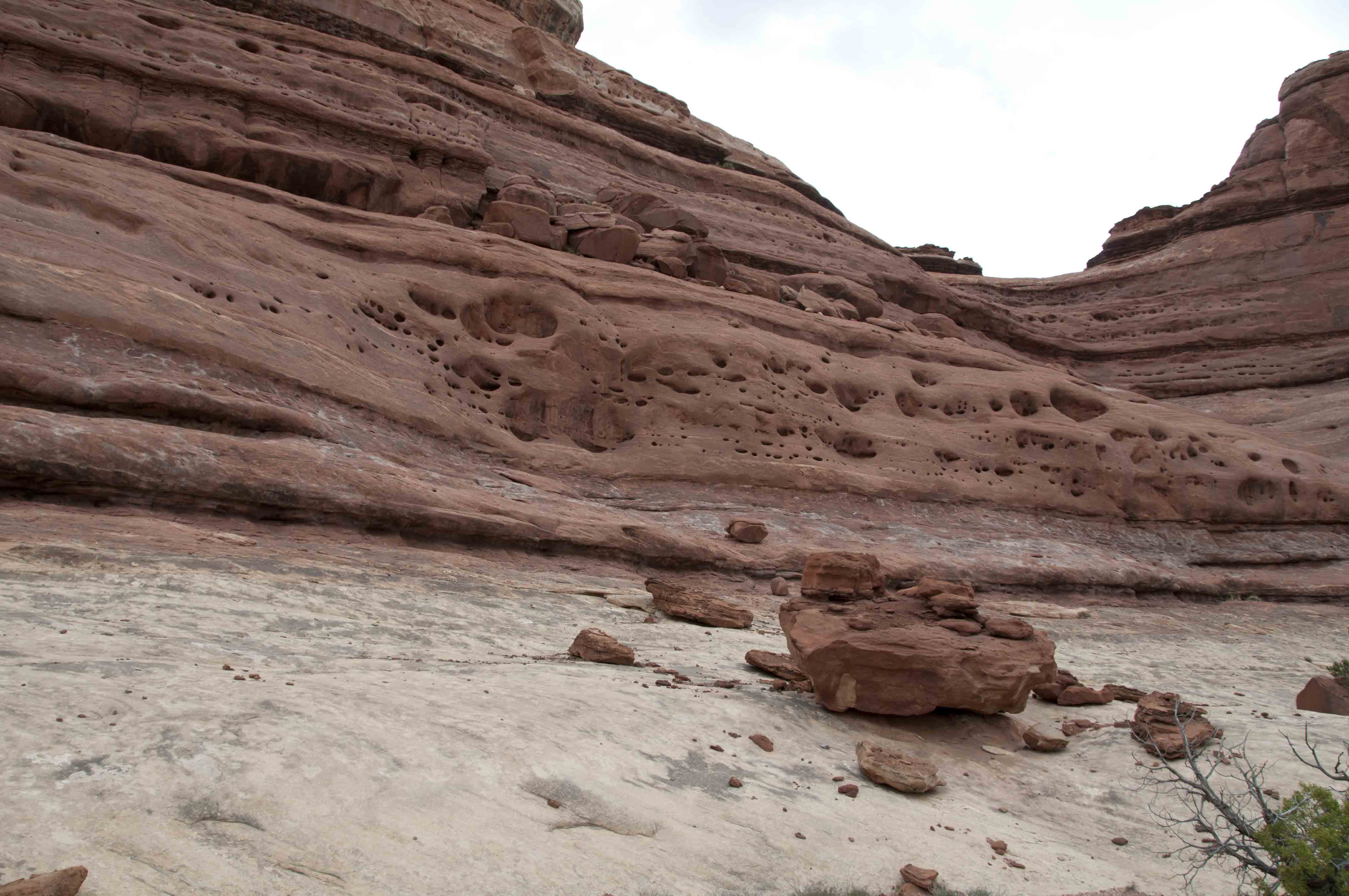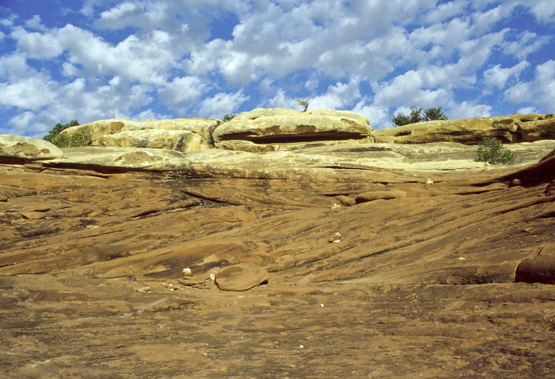 Pothole Point trail crosses slickrock containing numerous depressions