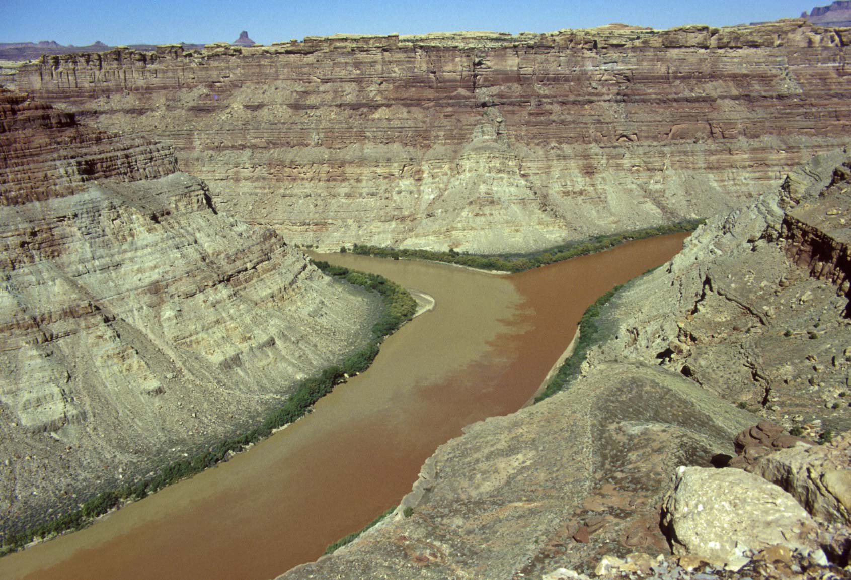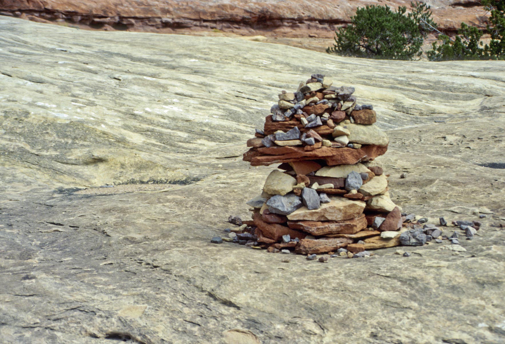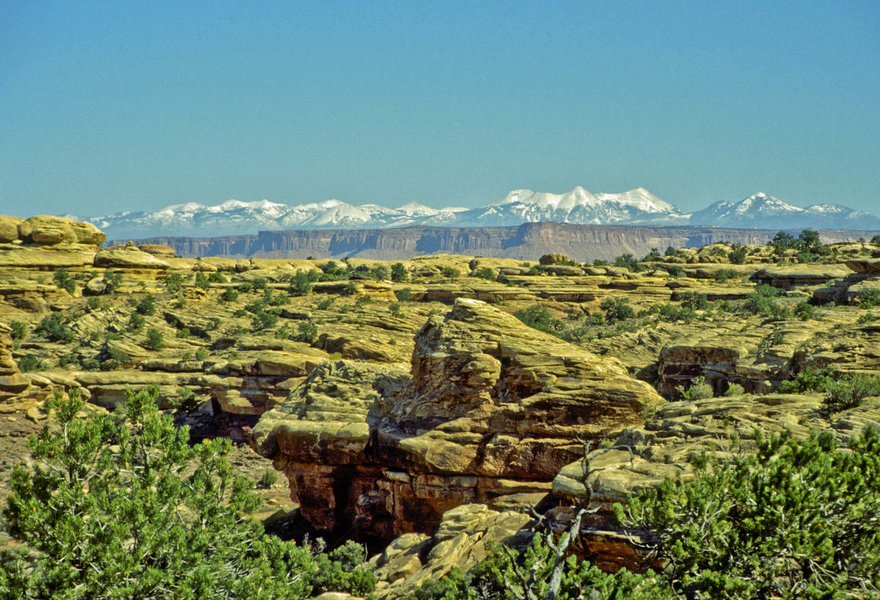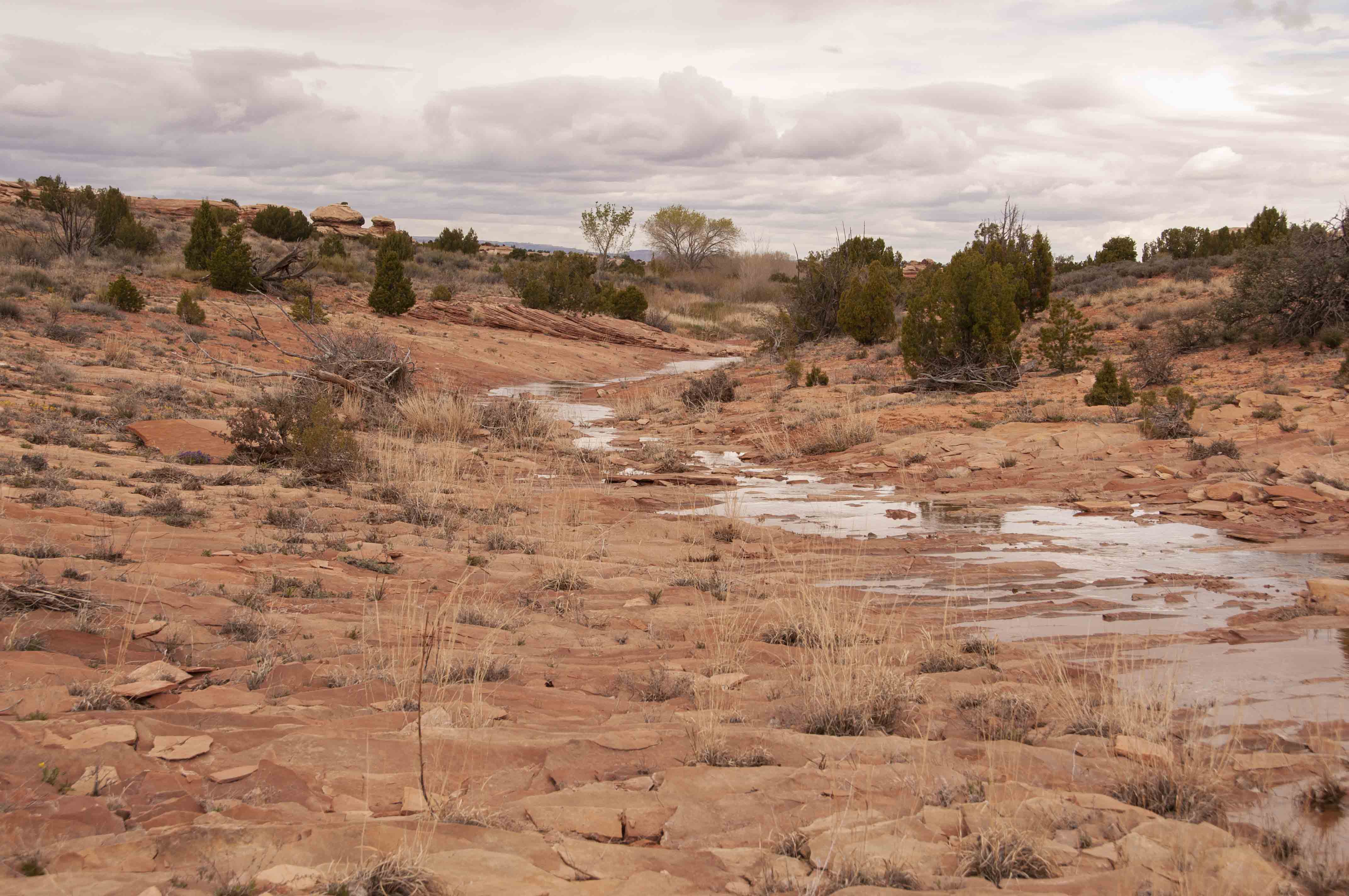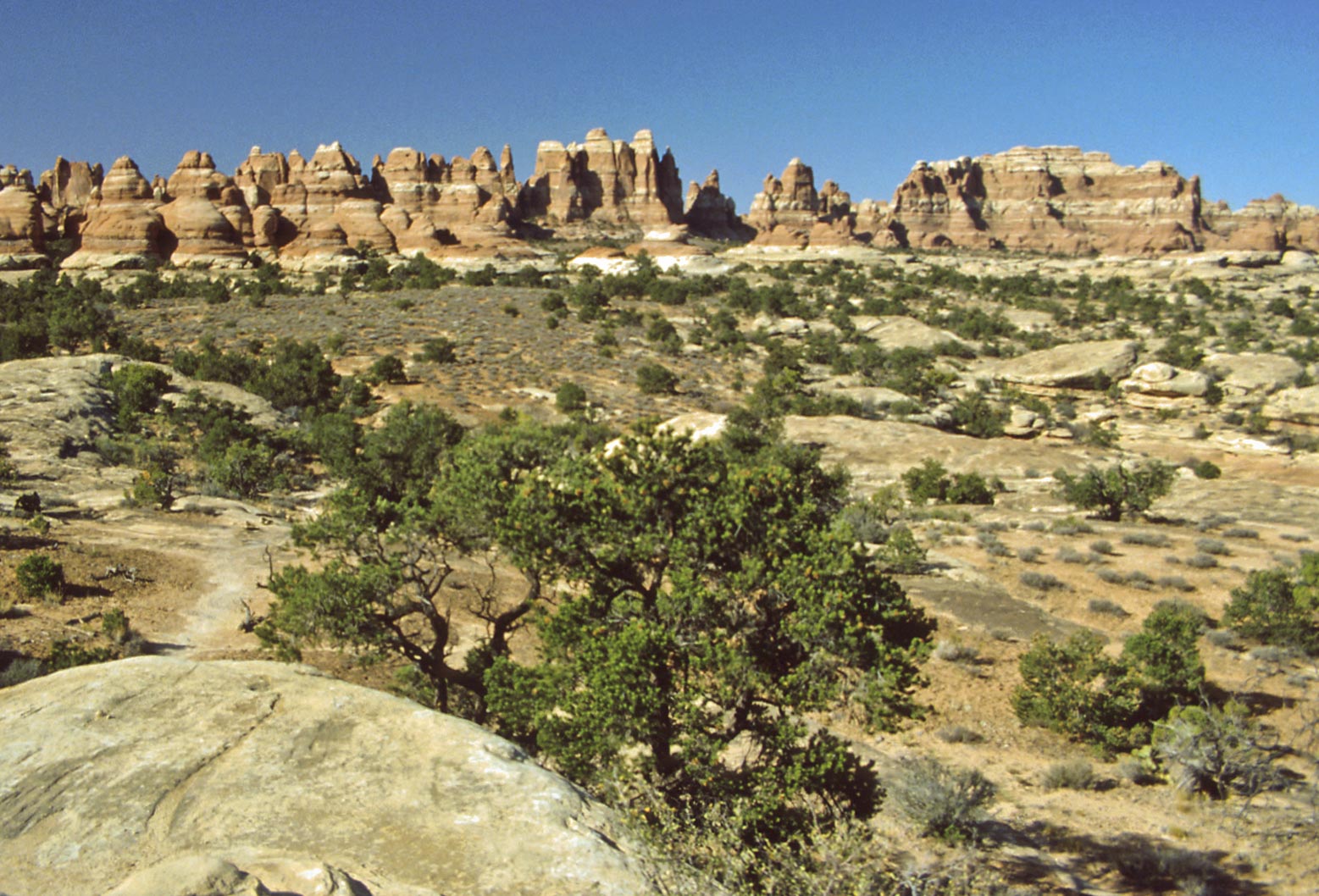 Pothole Point trail crosses slickrock containing numerous depressions