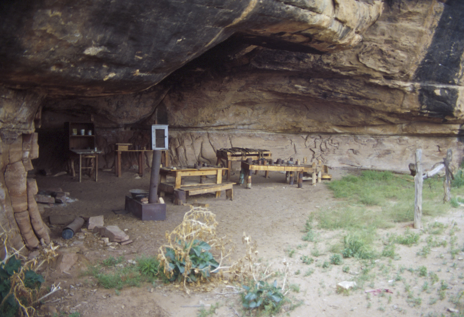 that traverses level sandy ground and slickrock. A late 1800's cowboy line camp and Anasazi