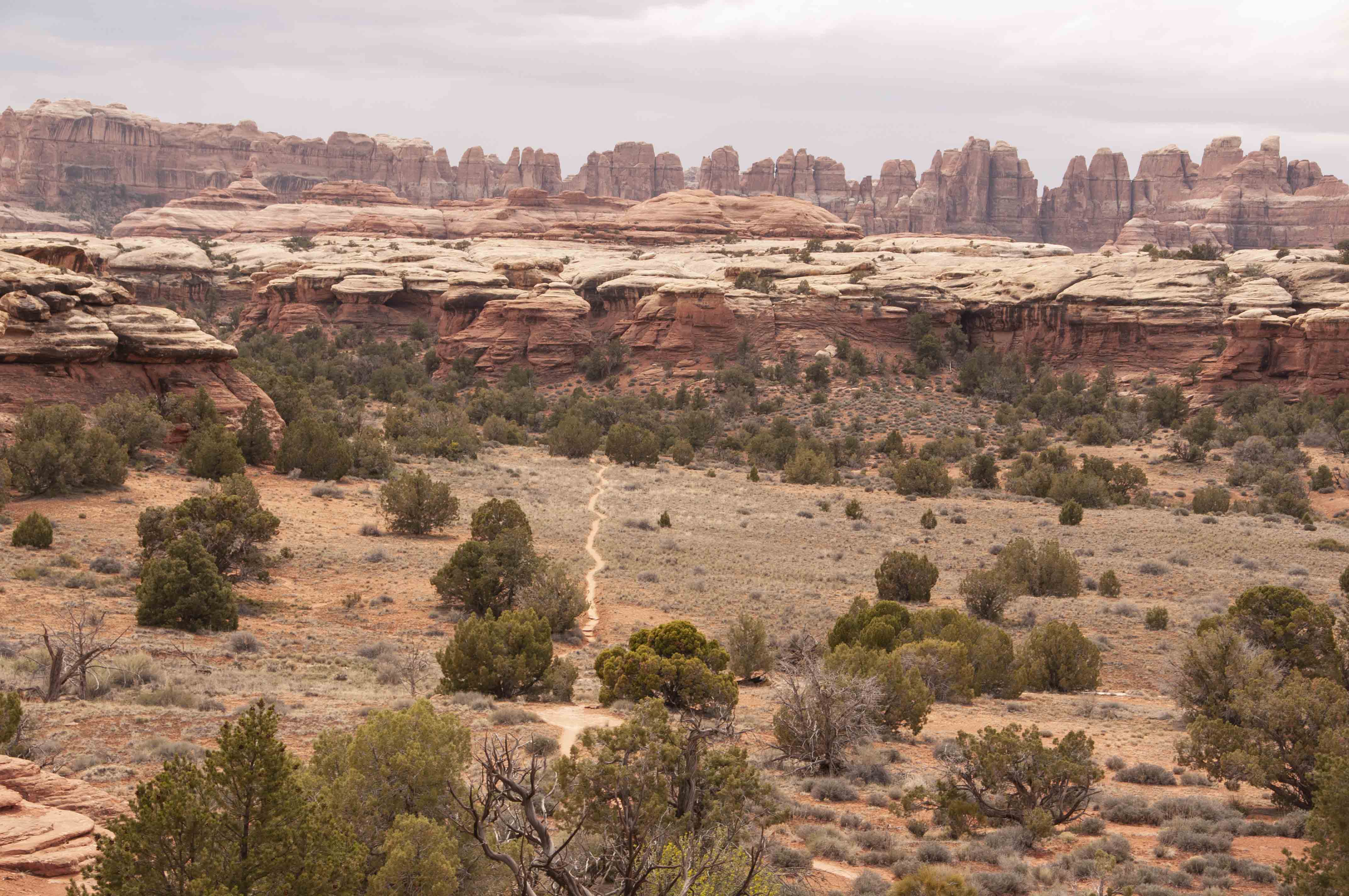 at Peekaboo Camp and Salt Creek. The trail crosses open desert, canyons, and slickrock benches.