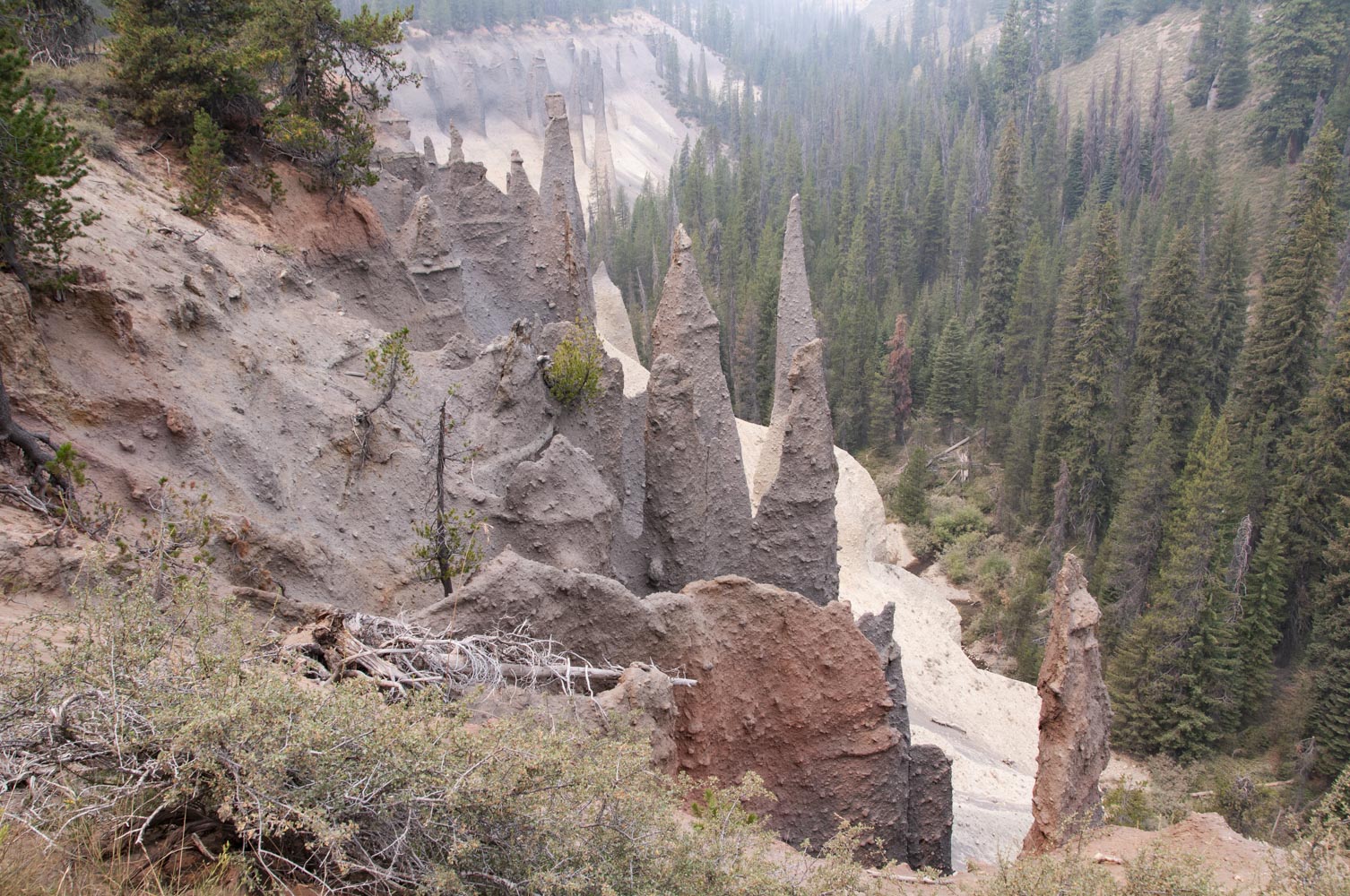 Super-heated pumice flowed into Wheeler Creek canyon at the time of the Mount Mazama eruption. Steam and gas