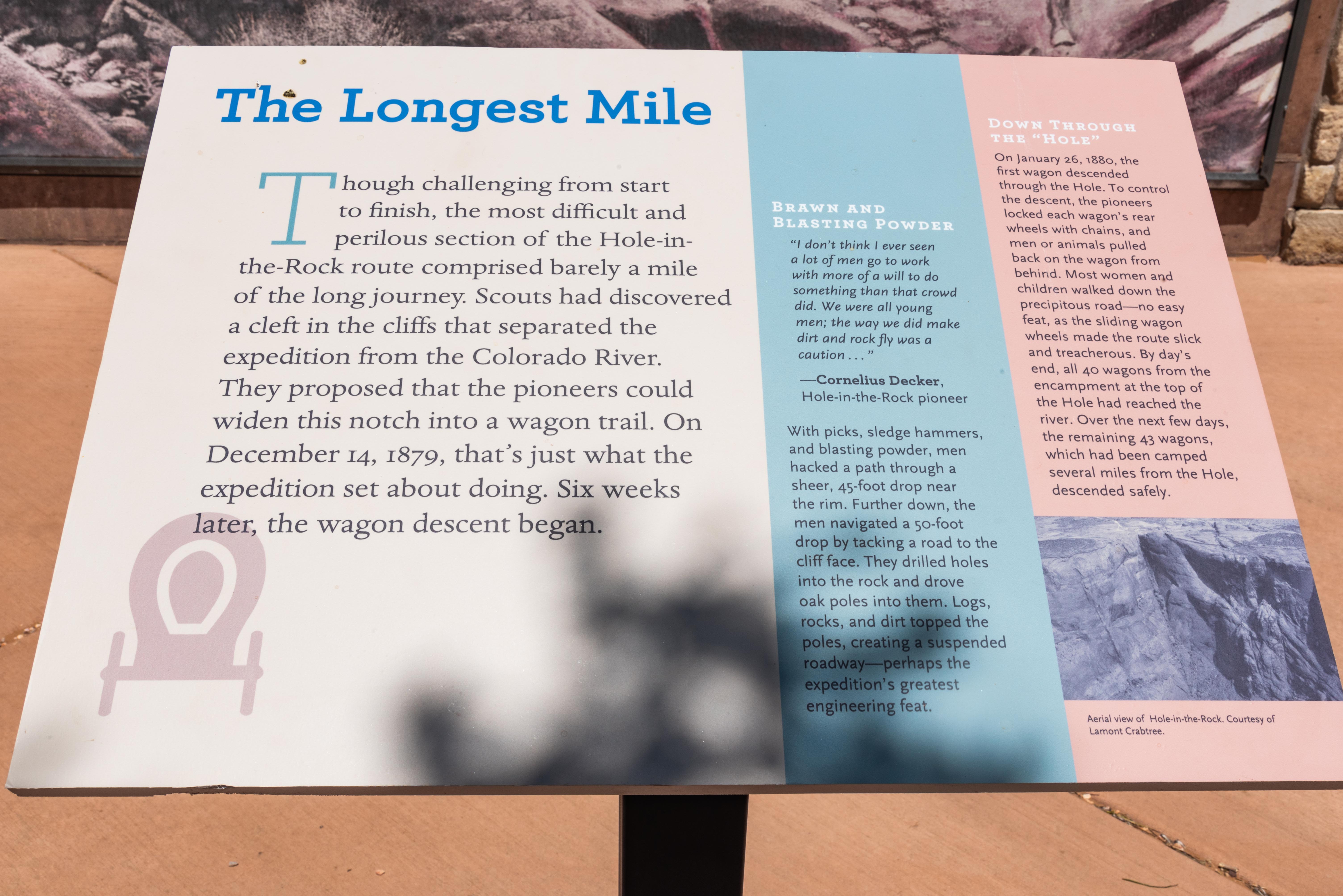 The center chronicles the journey of a group of Mormon pioneers from southwestern to southeastern Utah,