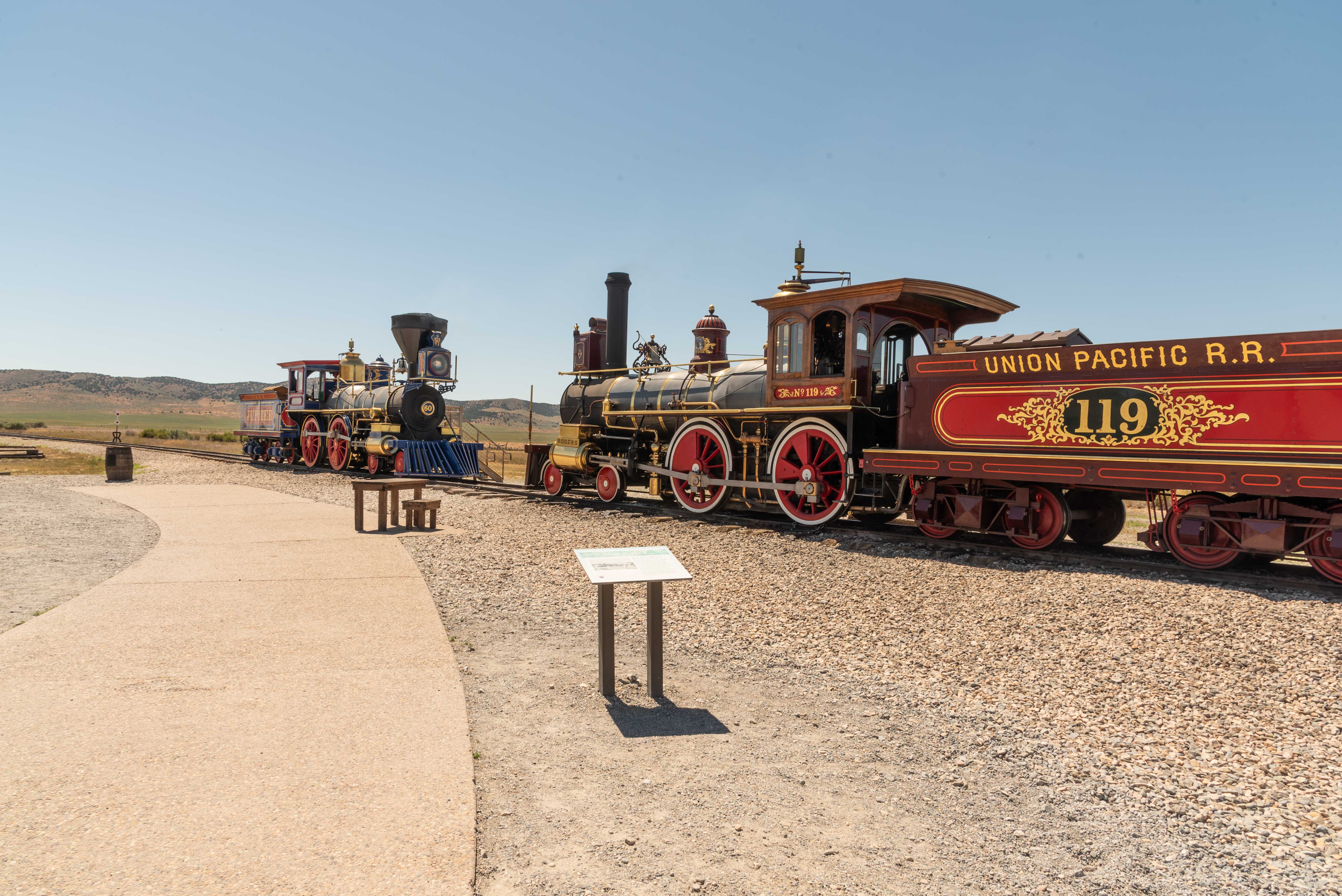 The park commemorates the birth of the first transcontinental railroad with the joining of the Central Pacific rail line from Sacramento and