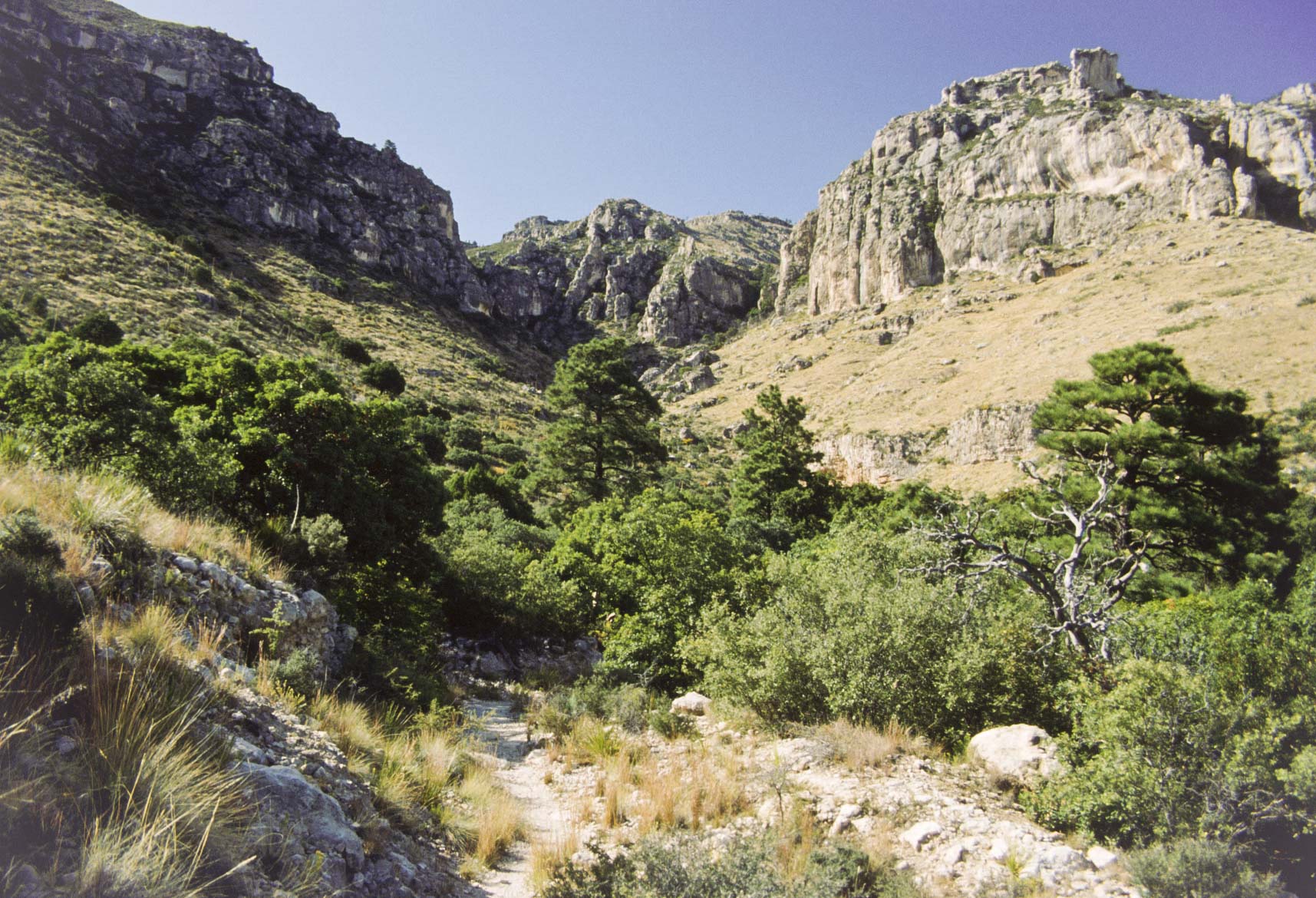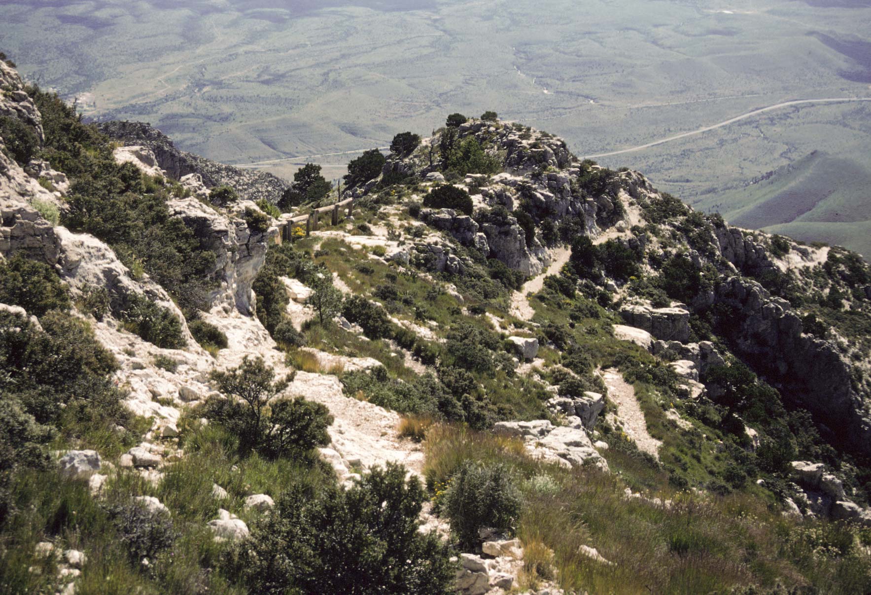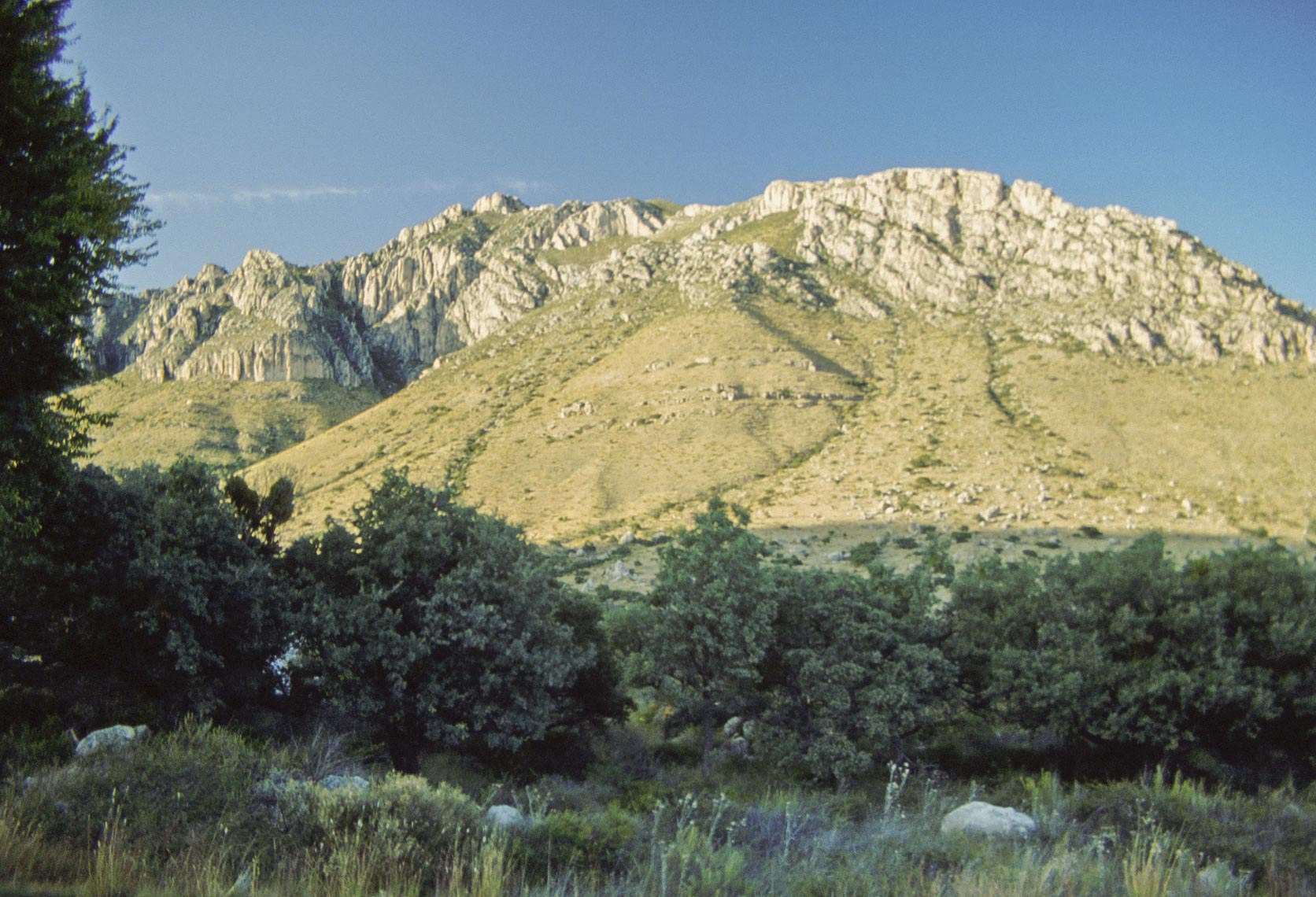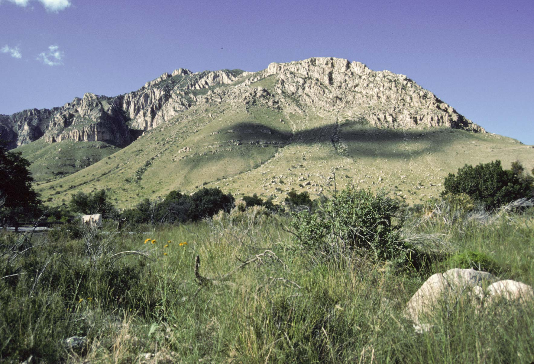 Guadalupe Mountains National Park is located on US Hwys 180/62 in West Texas along the Texas-New Mexico state line. The Park includes much of the Guadalupe Mountain range, which was once a reef at the edge of a shallow Permian sea. Guadalupe Mountains National Park is a hikers park, with some 80 miles of trails. Day hikes will take you through different climate zones, from a Chihuahuan desert environment to high country forests. The pictures presented here are from trips to the park in 1989, 1992, and 1998.