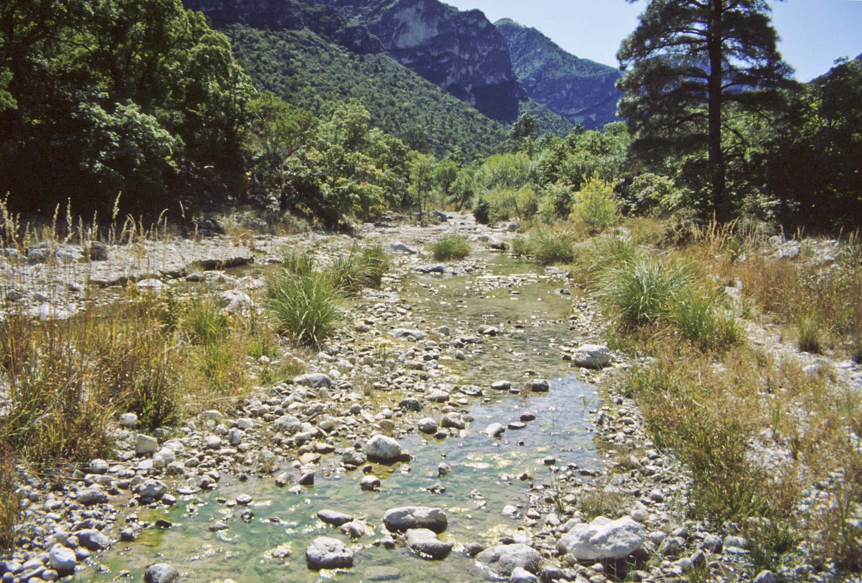 The trail quickly passes out of the desert and into the canyon, following an intermittent stream
