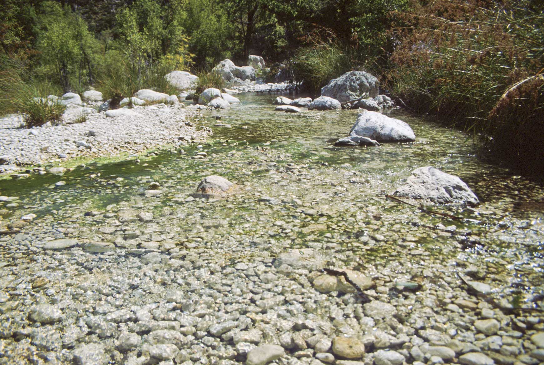 Campgroud. This rocky trail initially crosses desert terrain, then follows the streambed