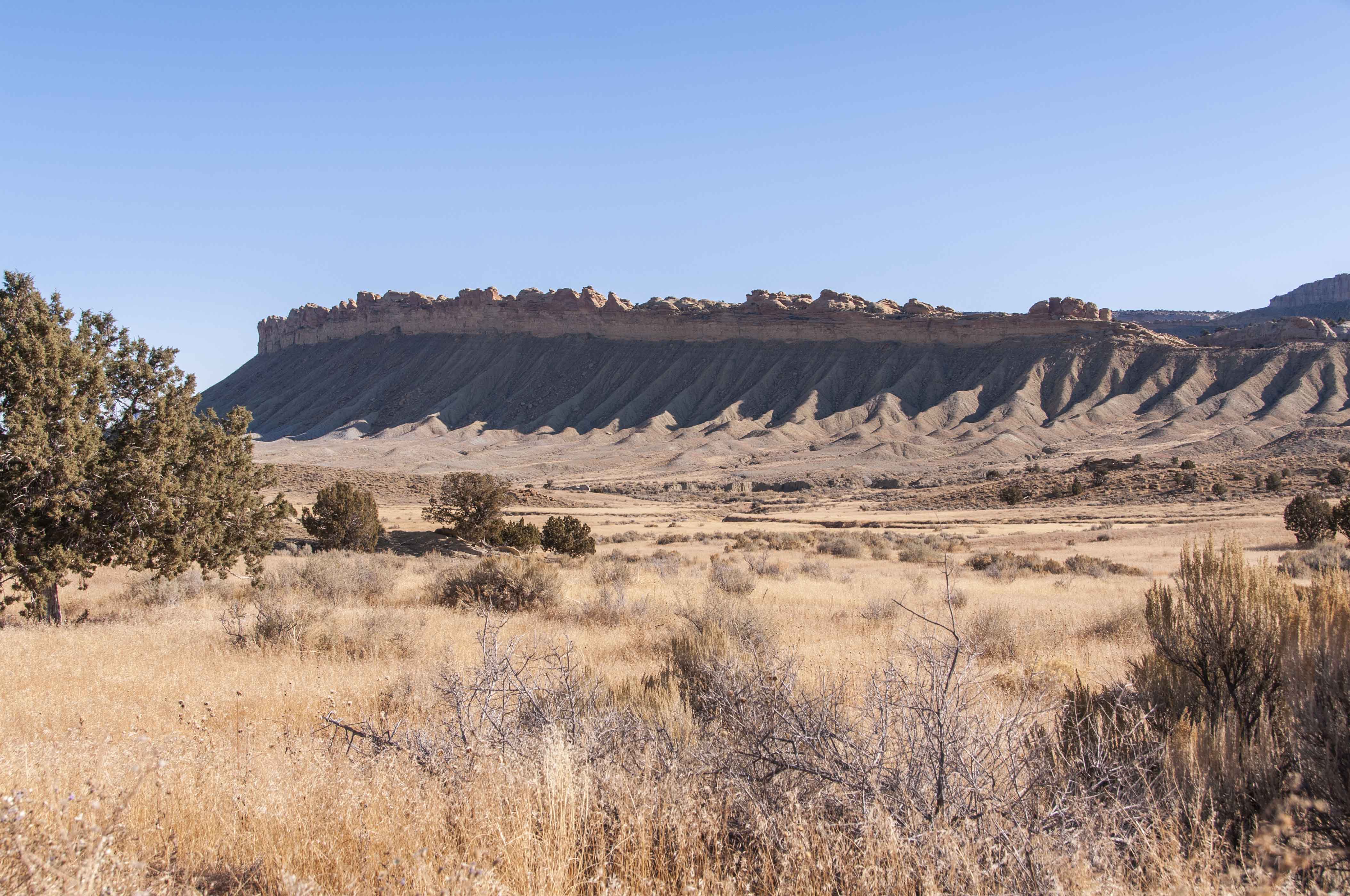 of the steeply-tilted eastern face of the Waterpocket Fold. There is a sharp