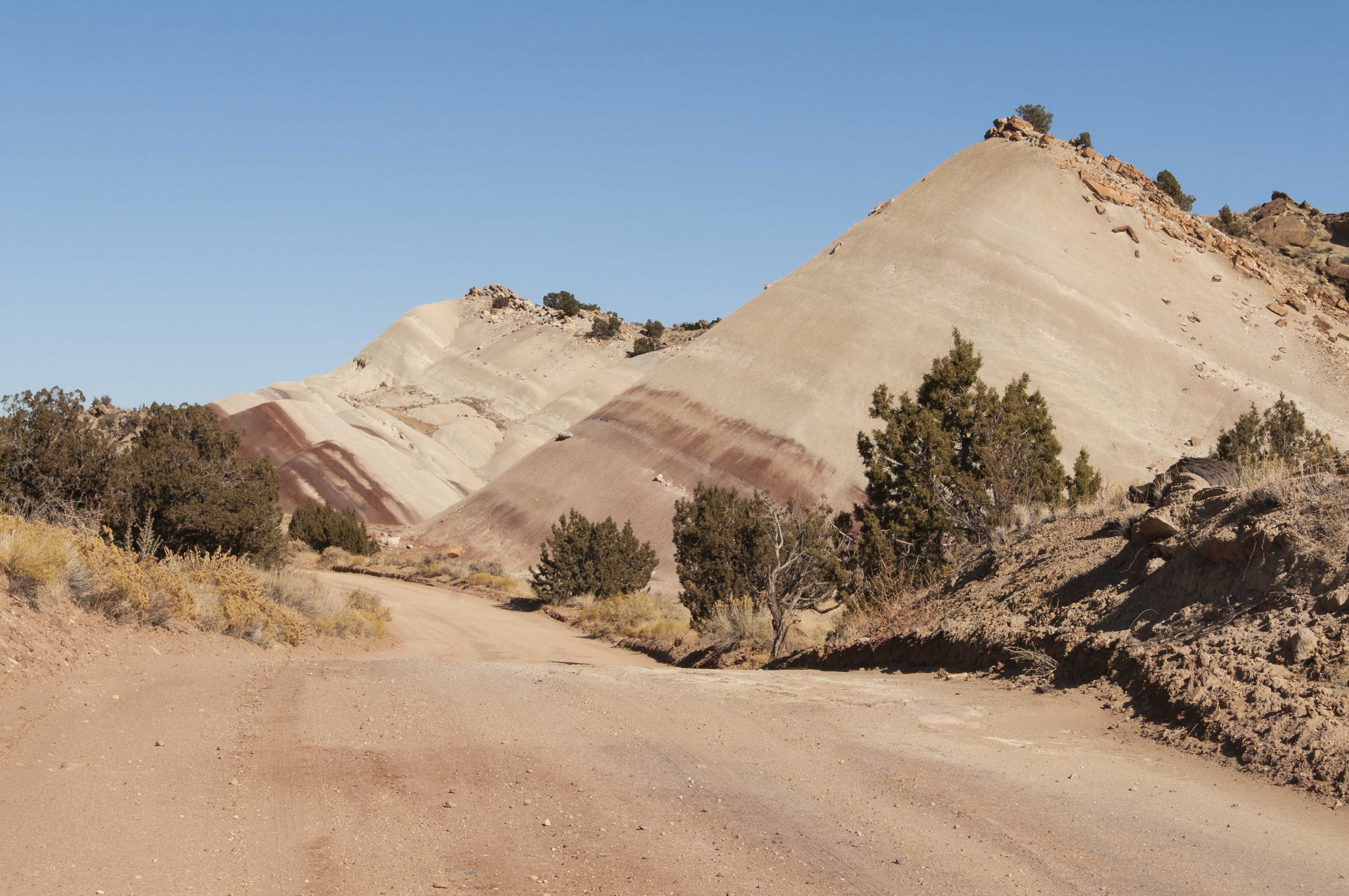 photo) and the multi-colored claystone hills of the Brushy Basin Layer