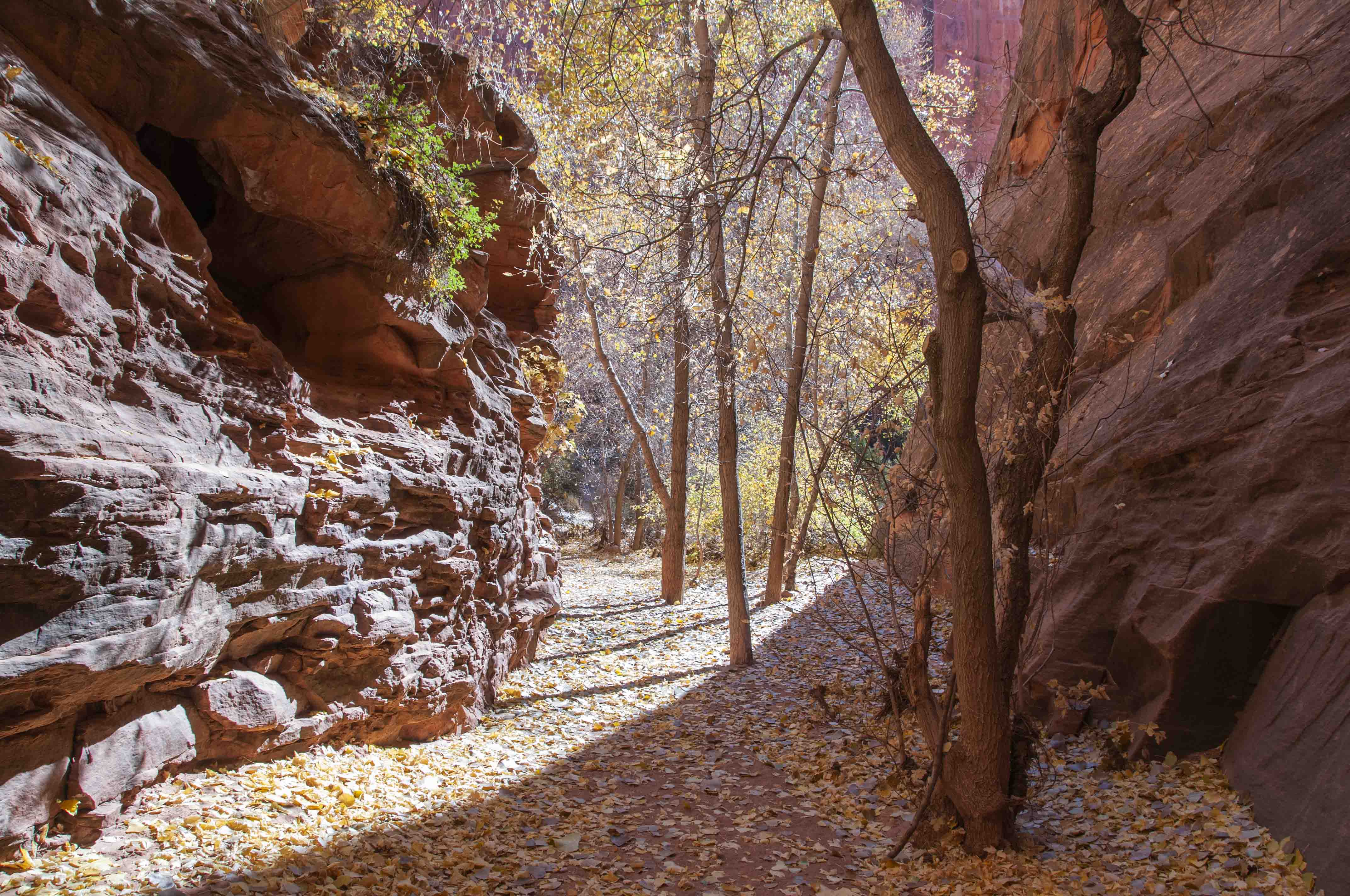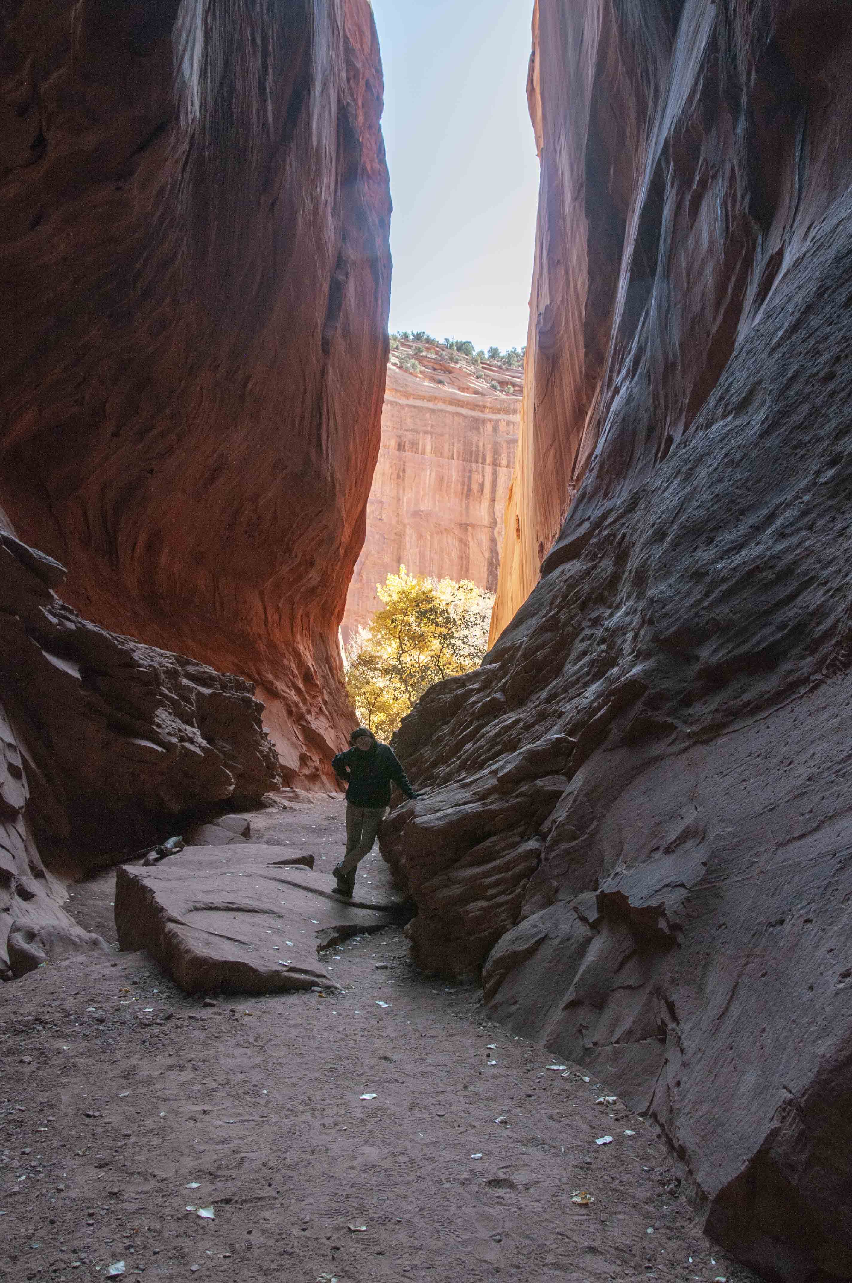 vertical crevice in the Wingate Sandstone cliff of Long Canyon.