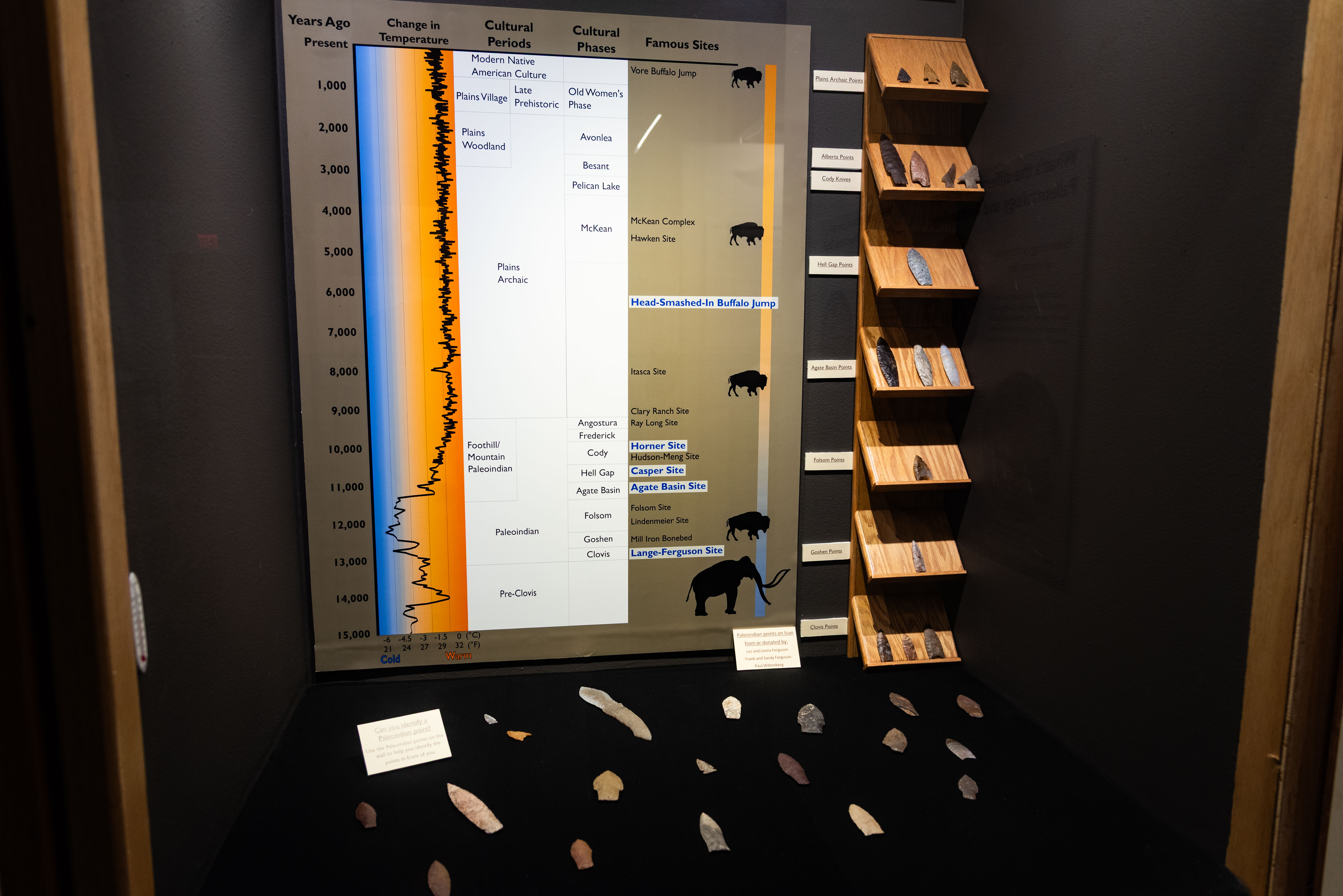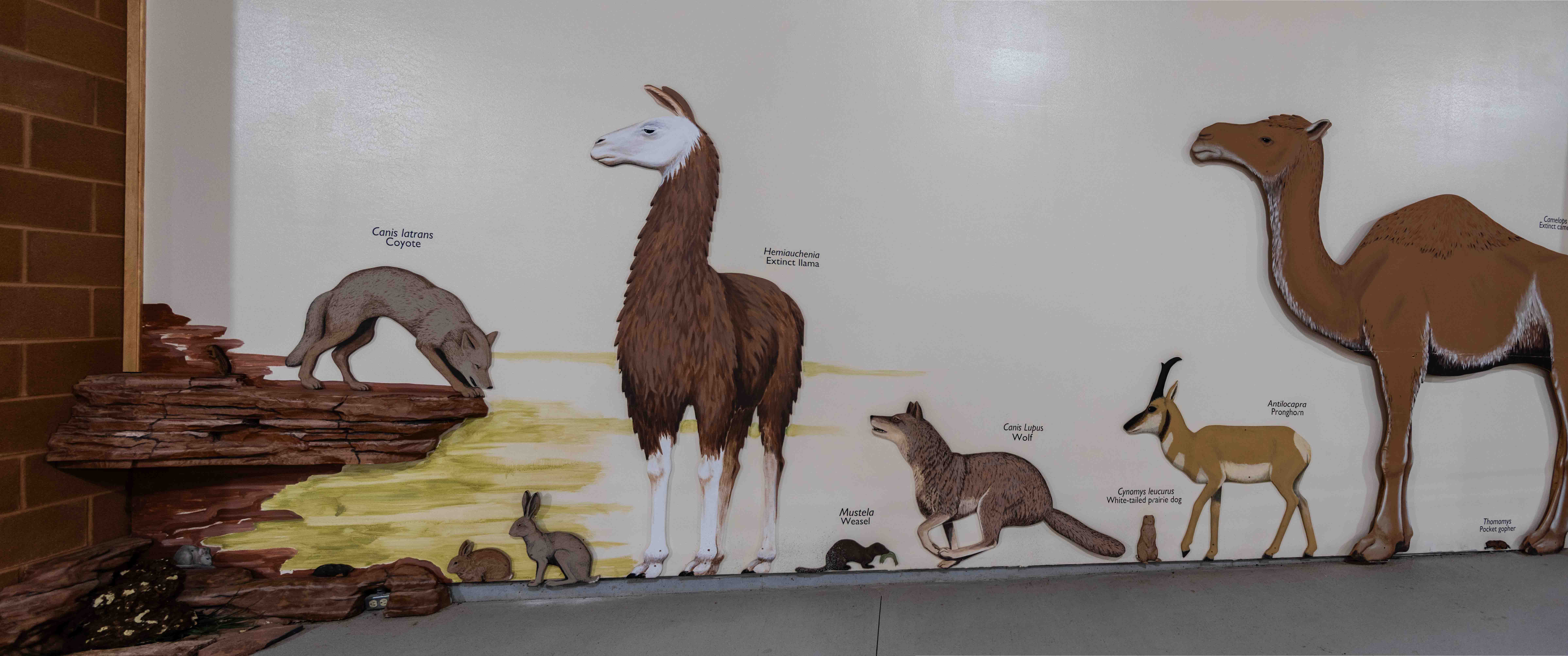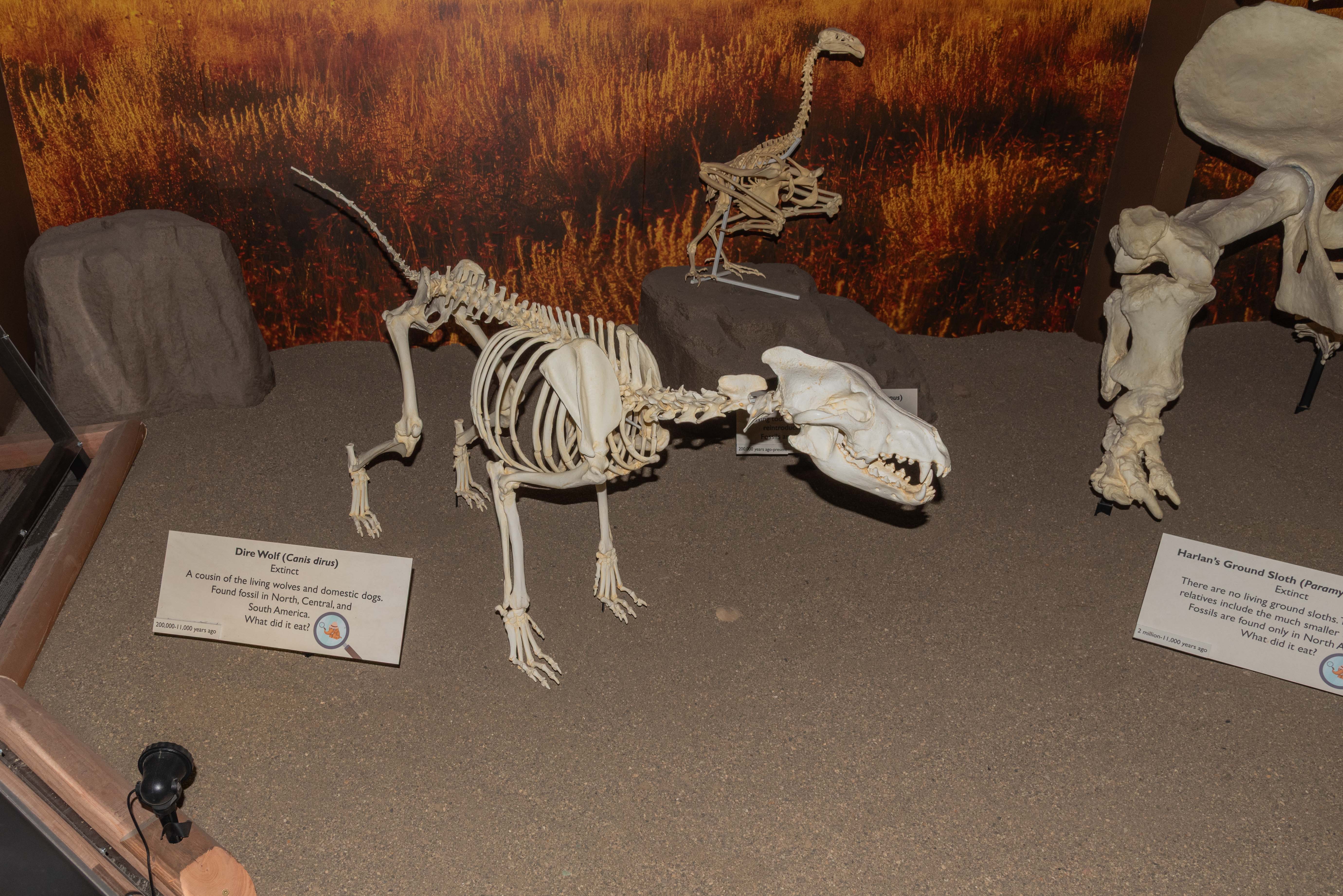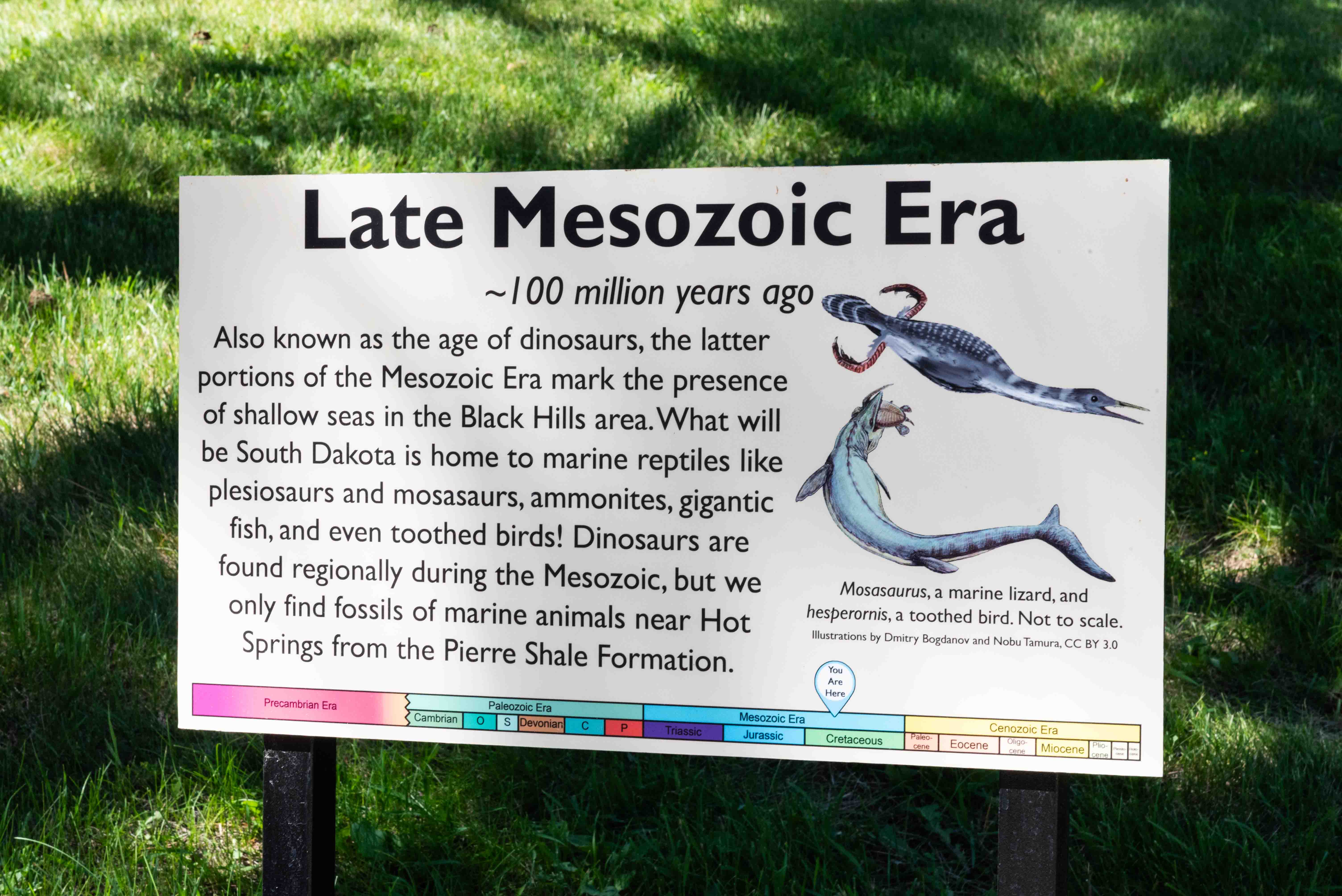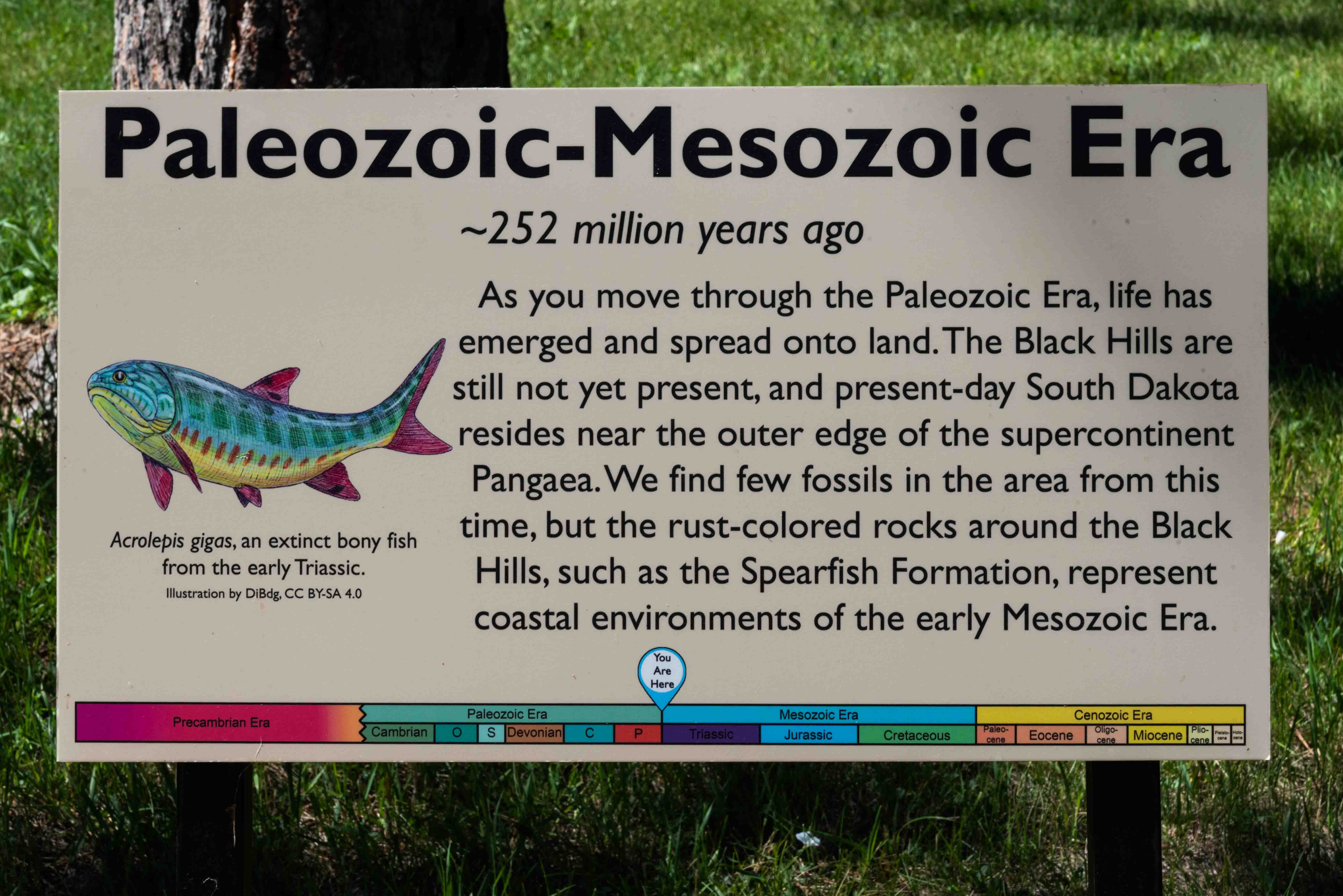 There are signs along the sidewalk from the parking lot to the museum describing the various time periods in Earth's history. The earliest time is near the parking lot. This is the Precambrian Era, 4.25 billion to 540 million years ago. Once you get to the building you've traveled in time all the way up to the Pleistocene Epoch of the Cenozoic Era, some 2.5 million years ago.