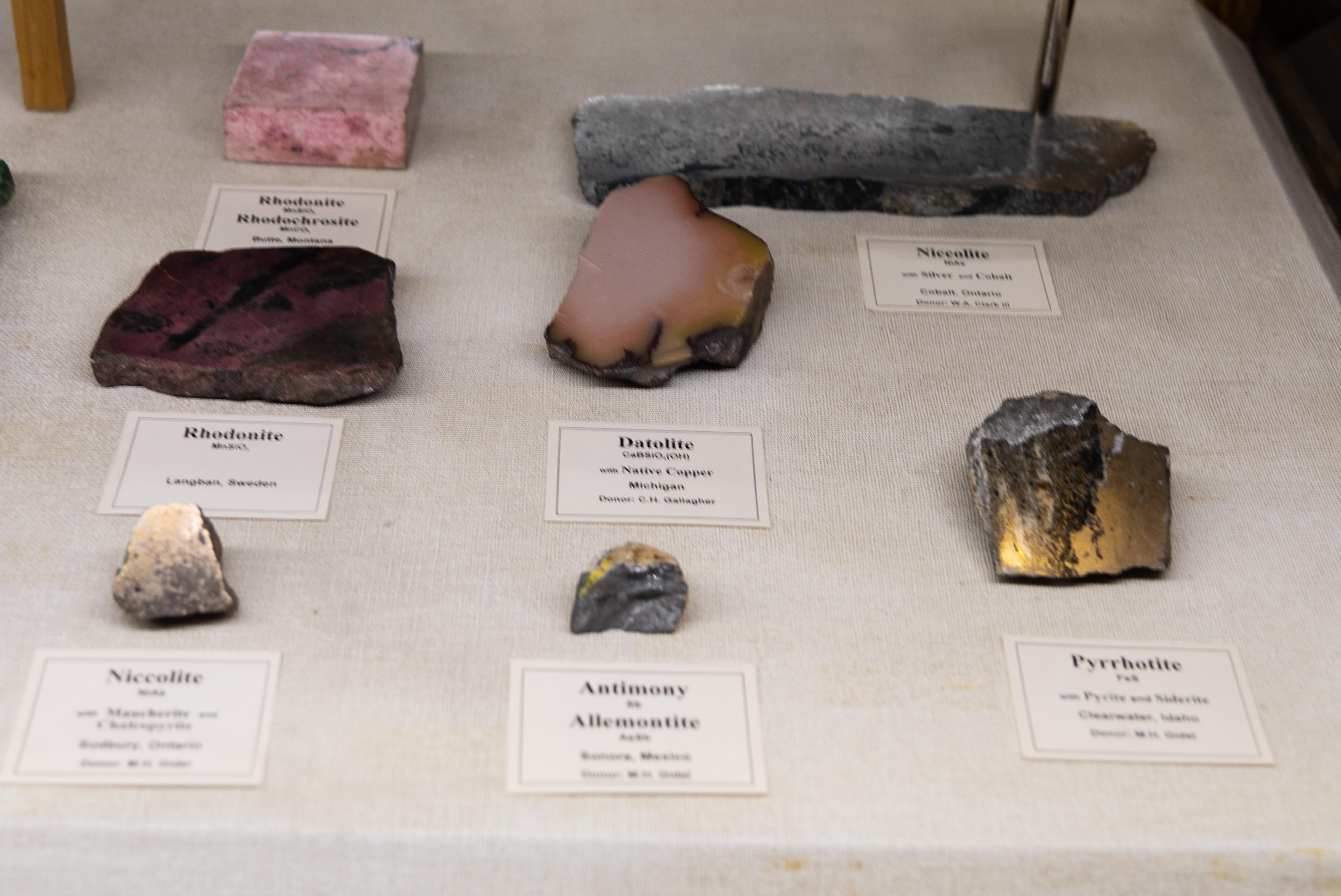 minerals, meteorites, and fossils. In addition to state and local specimens, there are displays of