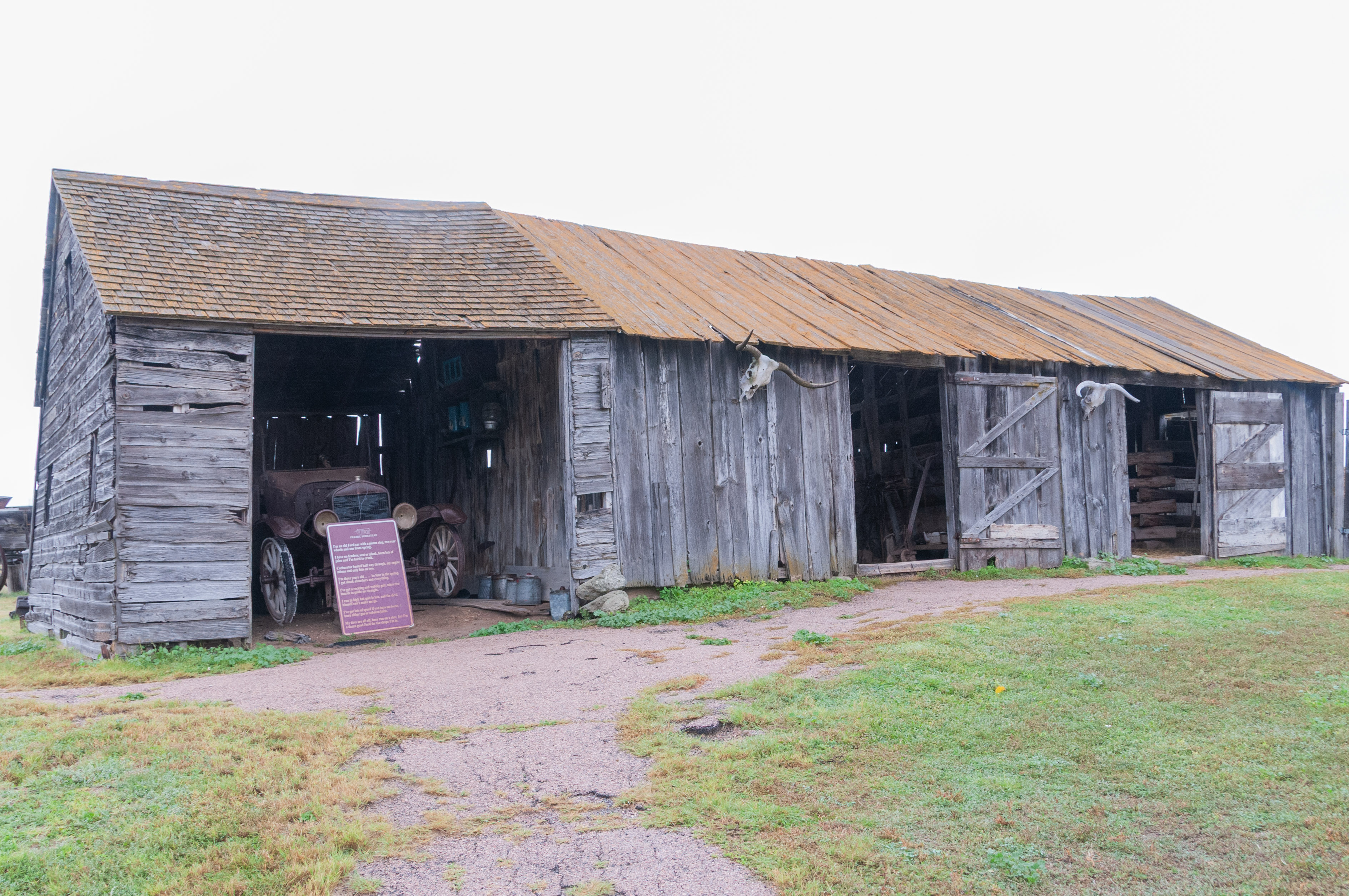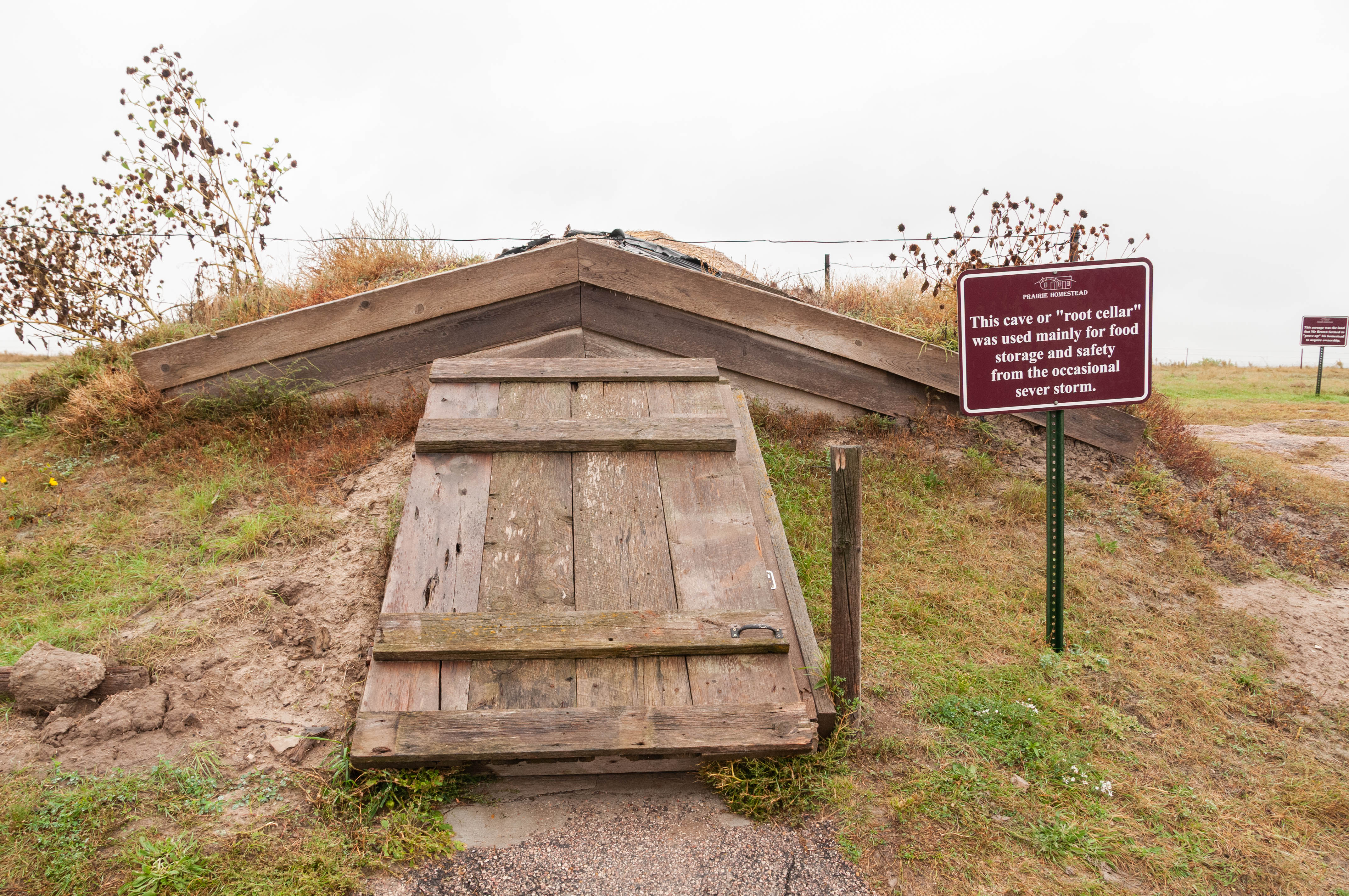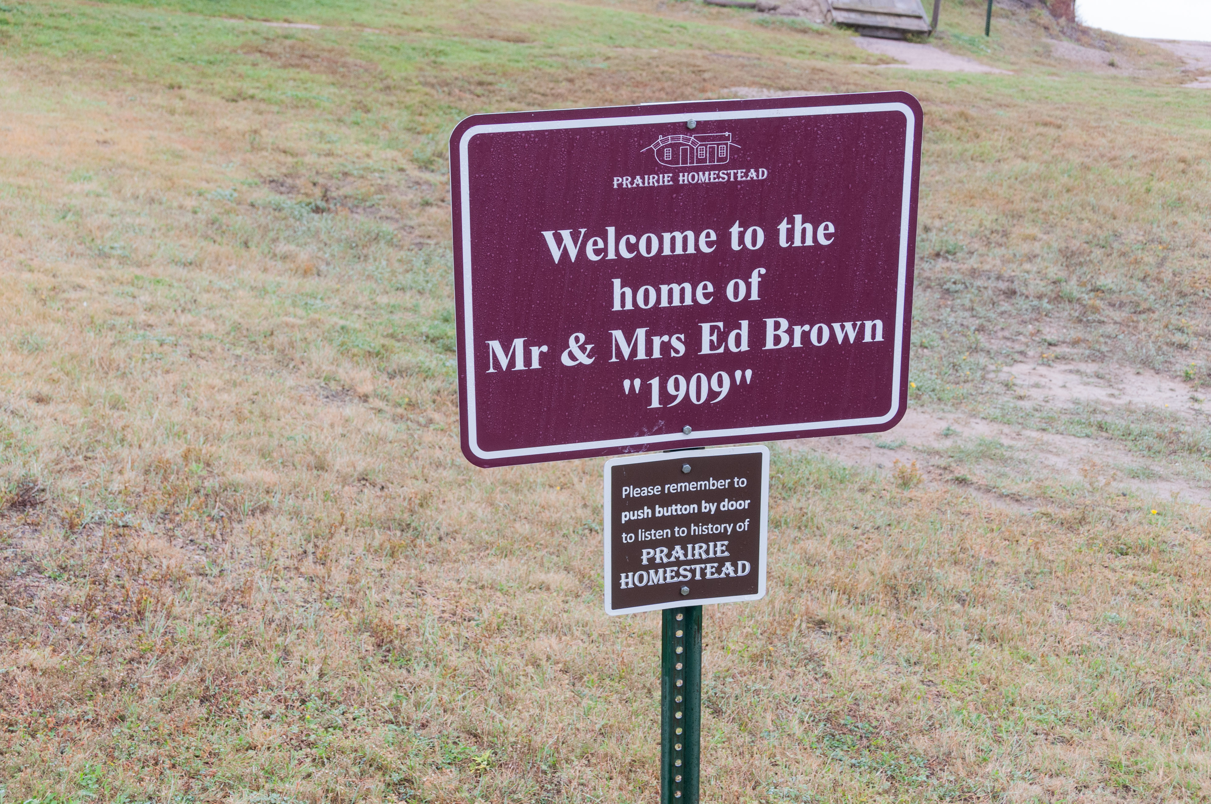 The Homestead Act of 1862 granted 160 acres of public land to any adult citizen as long as the individual lived on and improved the land for 5 years. The act really drove westward expansion, as an army of settlers headed for the western territories for a piece of America. Among them was Edgar I. Brown who settled on his 160 acres of prairie in the relatively new state of South Dakota in 1909. He and his wife created a modest homestead using the resources available to them. The Browns started with a sod house built into the side of a hill, although it looks like they added a wood frame room later on. So, on with the tour of a typical early 1900s prairie homestead. Prairie Homestead is located on SD Hwy 240 just north of the NE entrance to Badlands National Park. I toured the Homestead in Sept 2019.