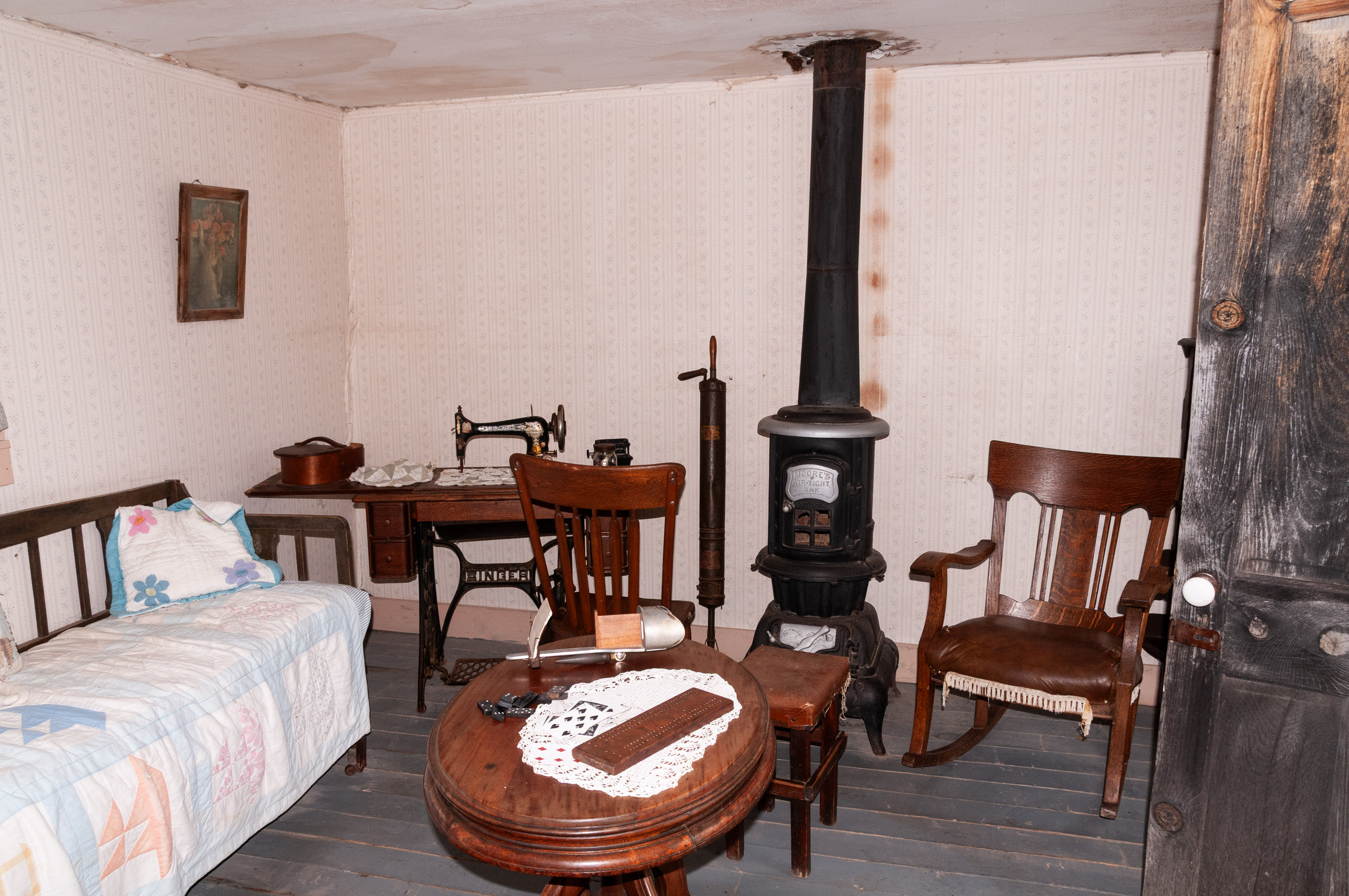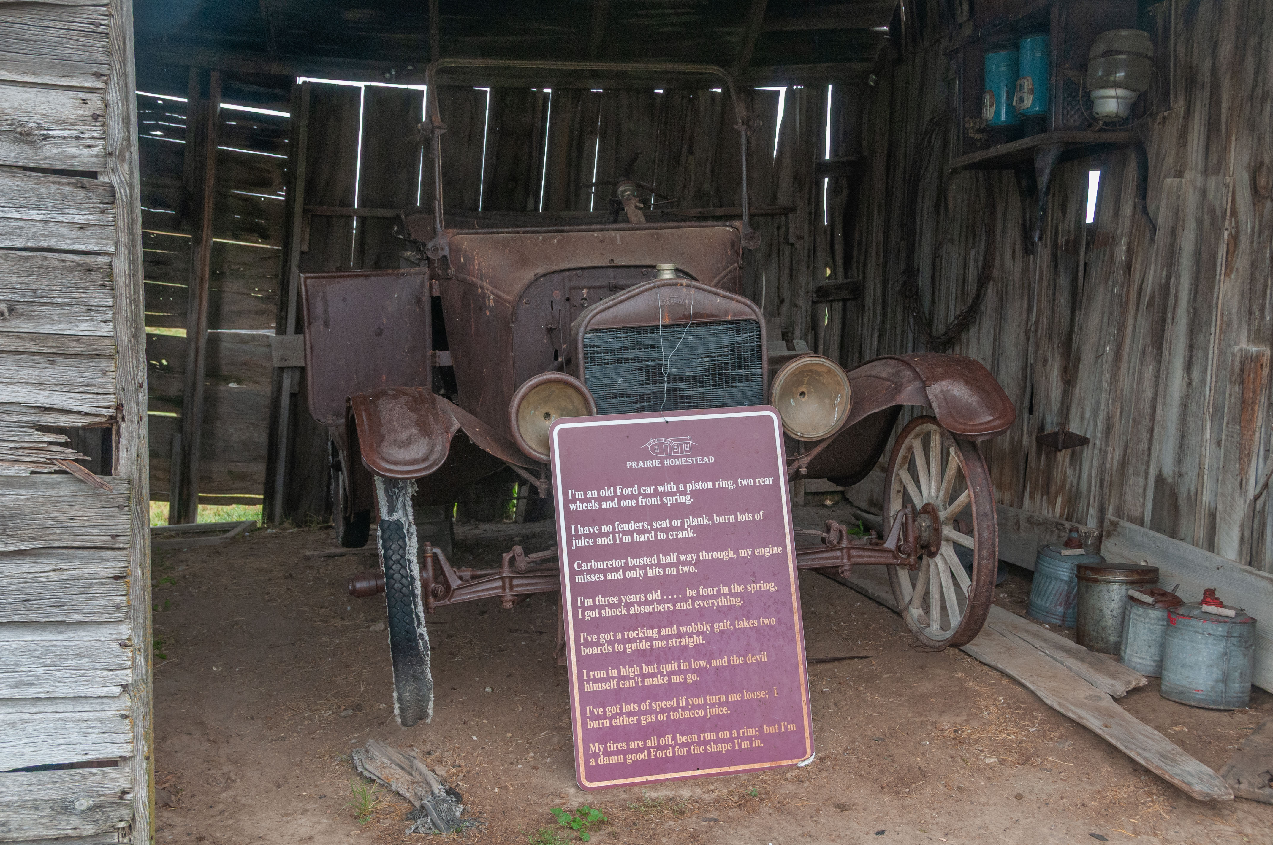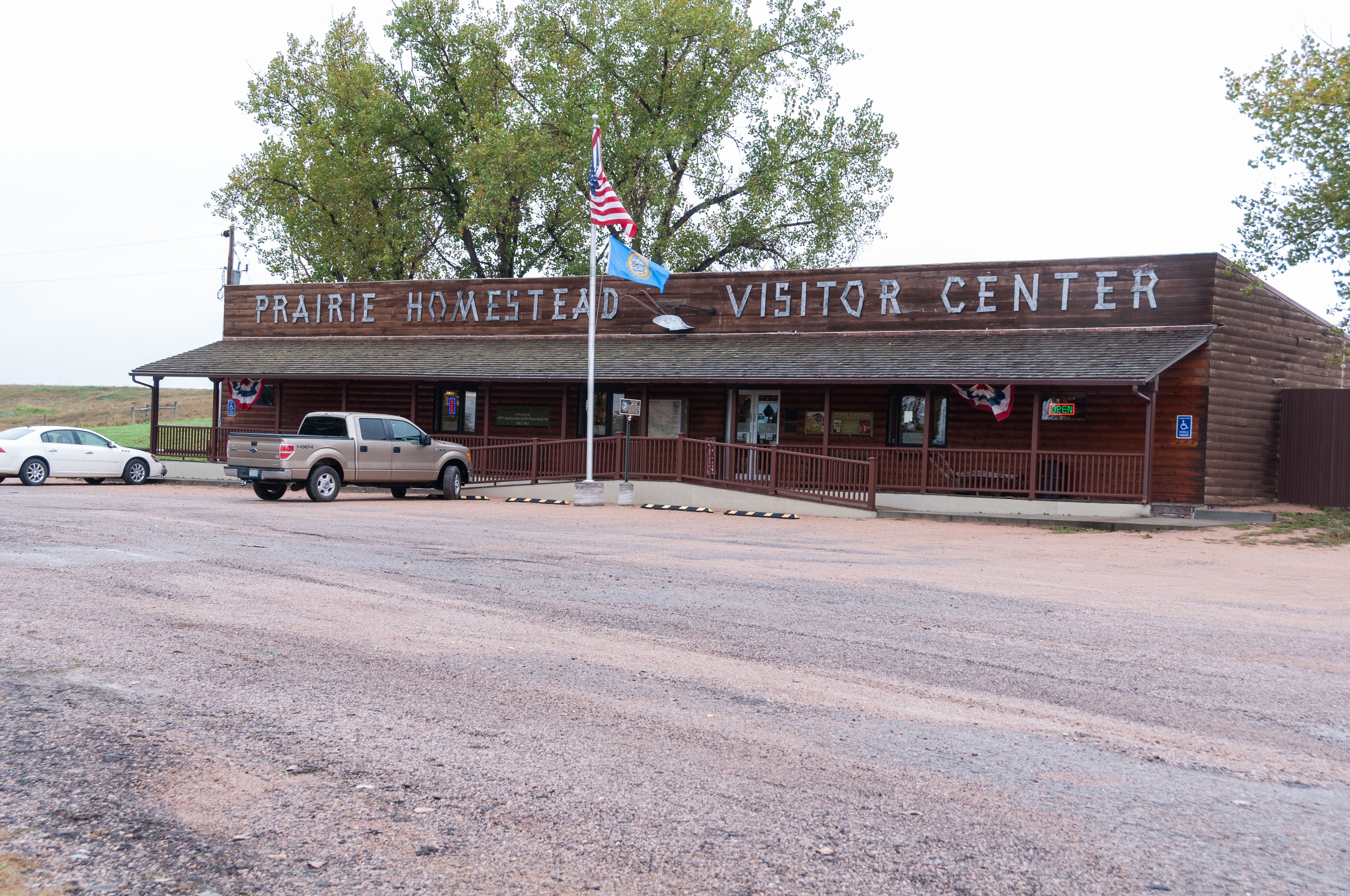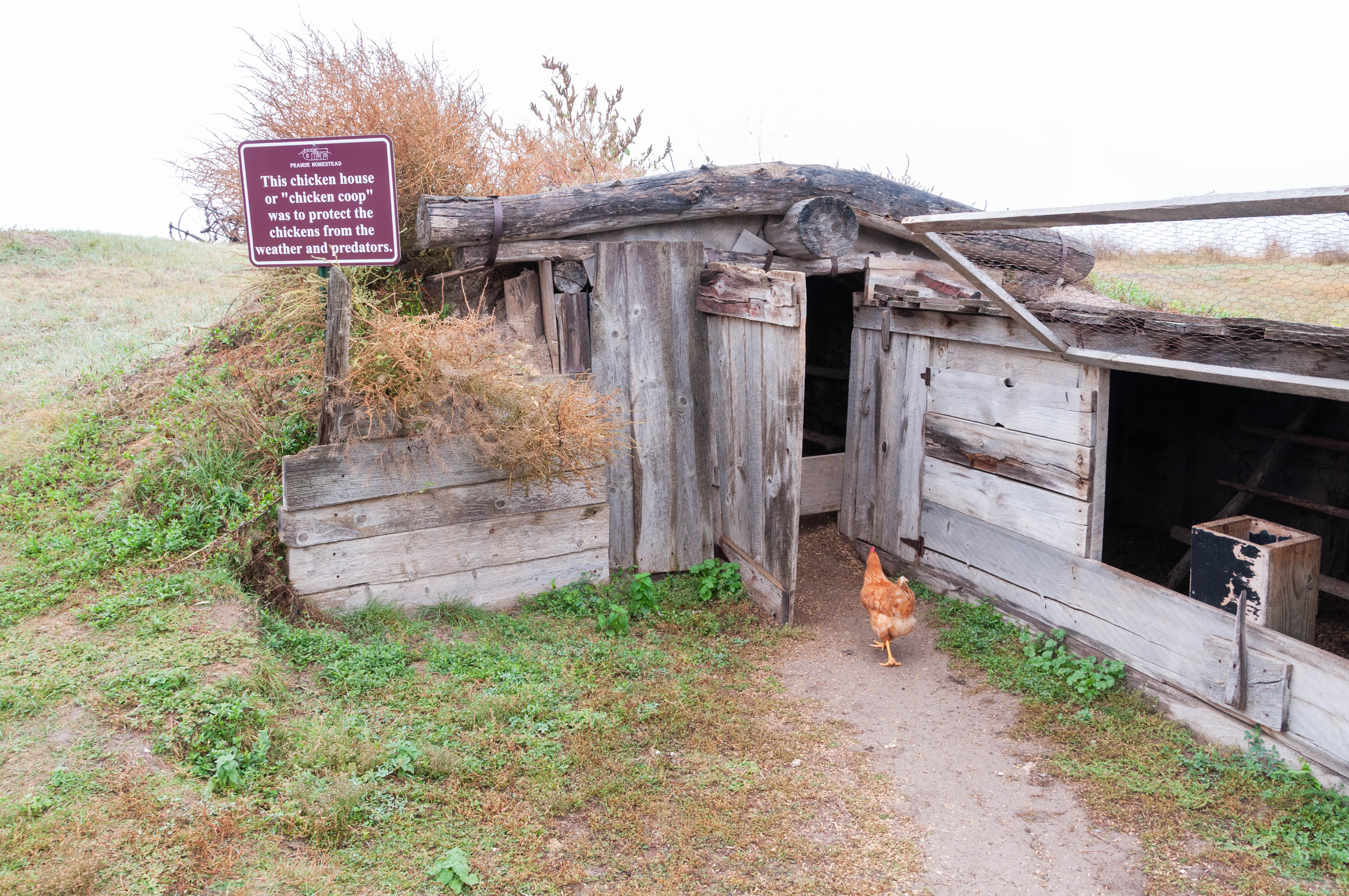 The Homestead Act of 1862 granted 160 acres of public land to any adult citizen as long as the individual lived on and improved the land for 5 years. The act really drove westward expansion, as an army of settlers headed for the western territories for a piece of America. Among them was Edgar I. Brown who settled on his 160 acres of prairie in the relatively new state of South Dakota in 1909. He and his wife created a modest homestead using the resources available to them. The Browns started with a sod house built into the side of a hill, although it looks like they added a wood frame room later on. So, on with the tour of a typical early 1900s prairie homestead. Prairie Homestead is located on SD Hwy 240 just north of the NE entrance to Badlands National Park. I toured the Homestead in Sept 2019.