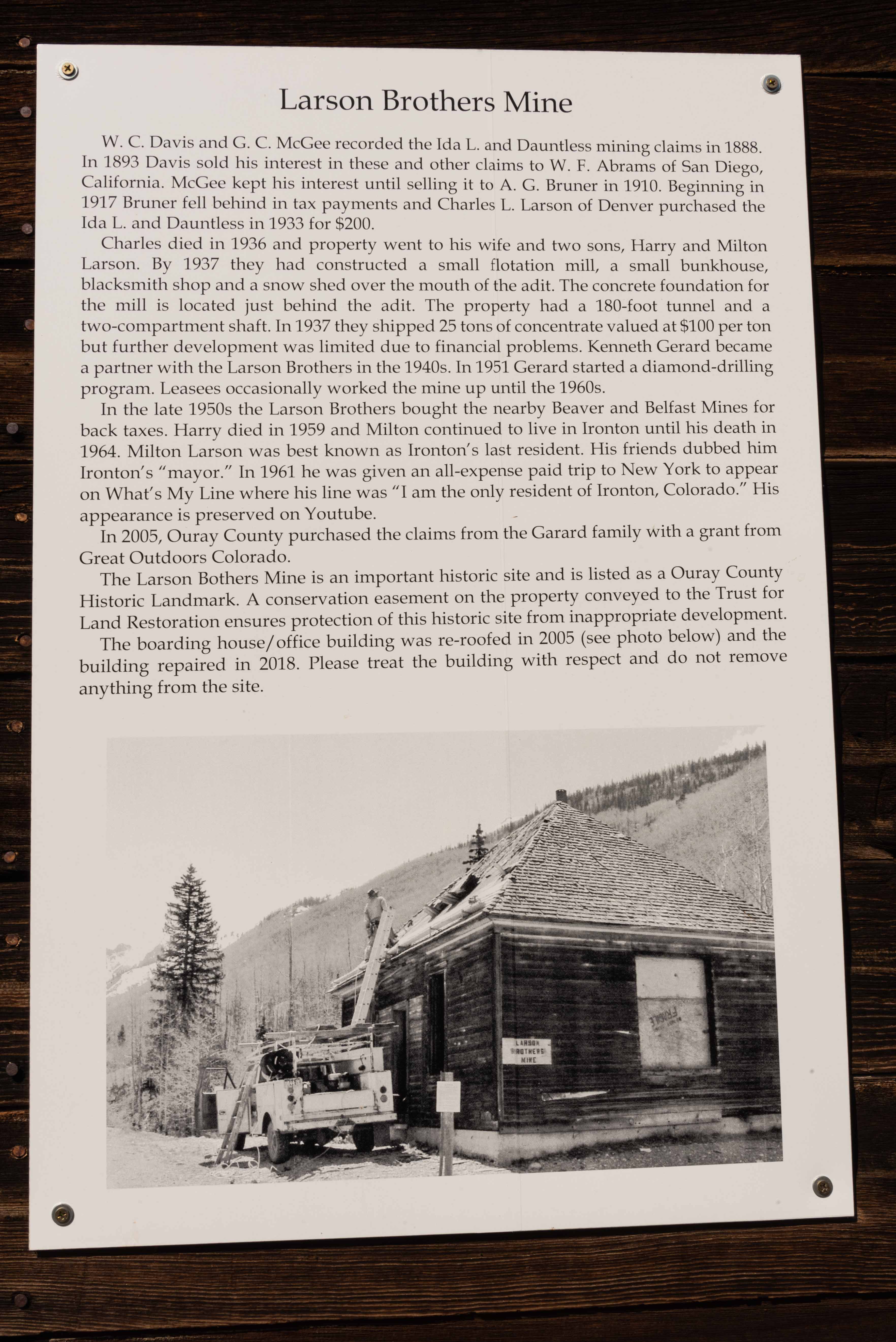 A few structures of the Larson Brothers Mine are located across US 550 from Ironton Park.