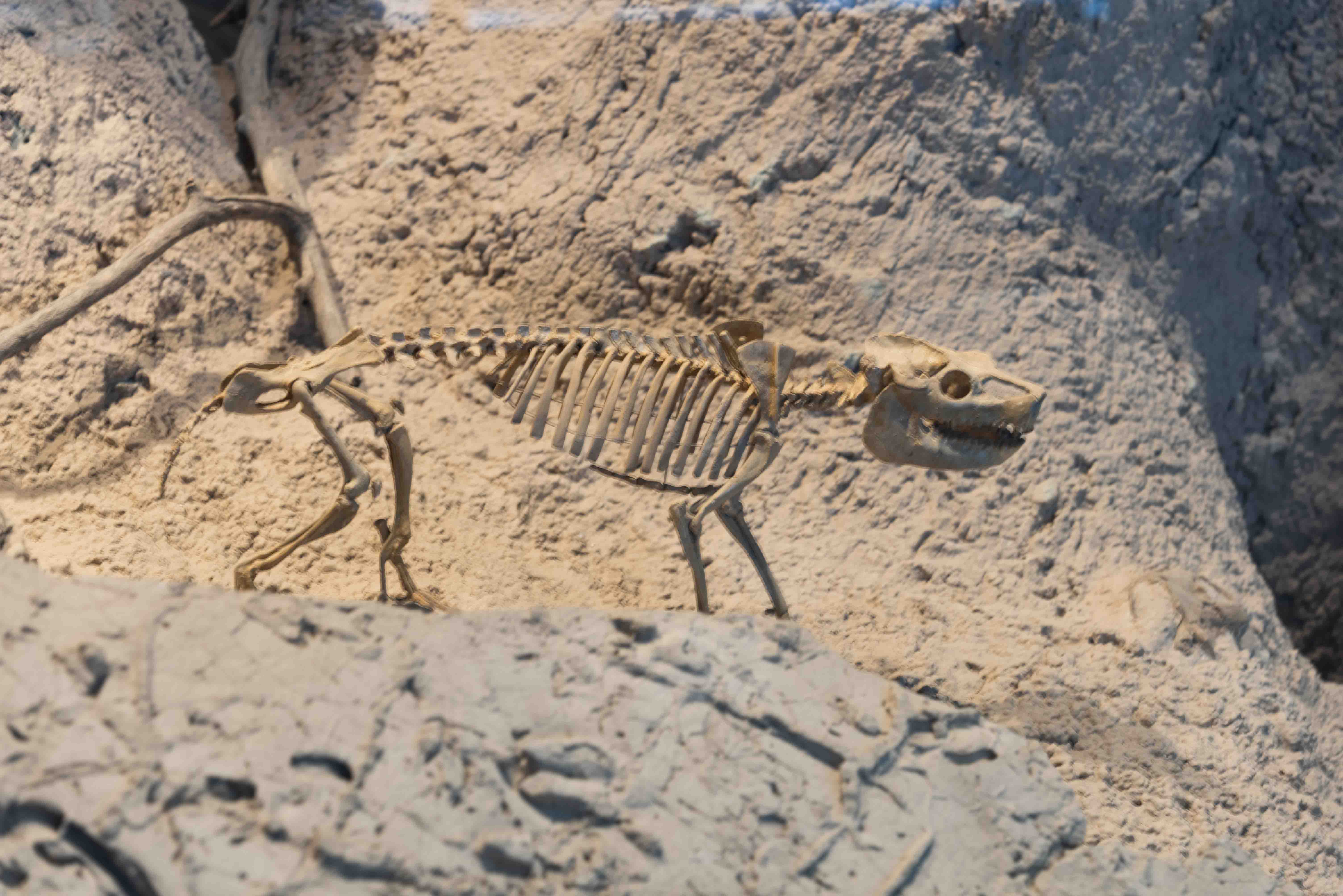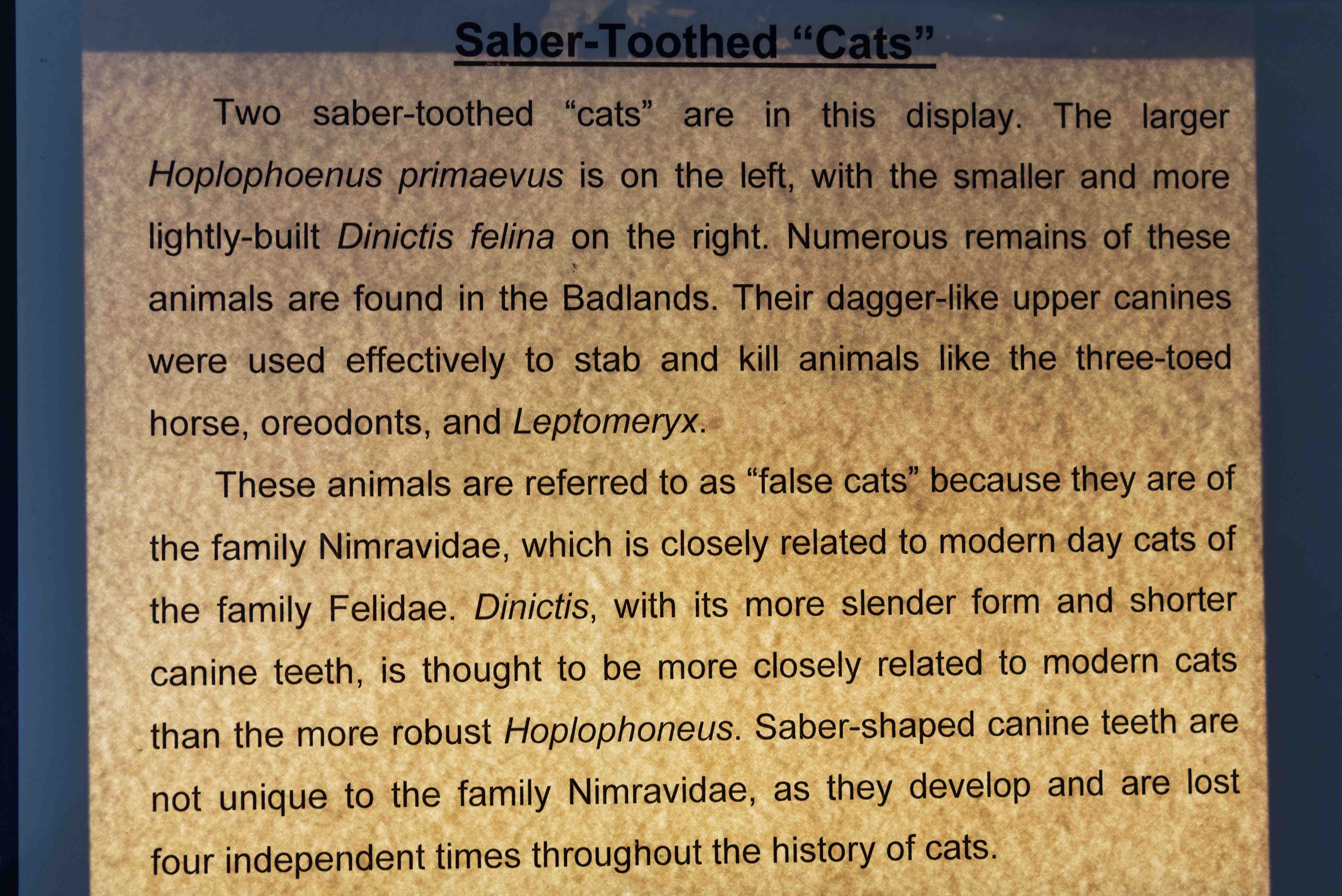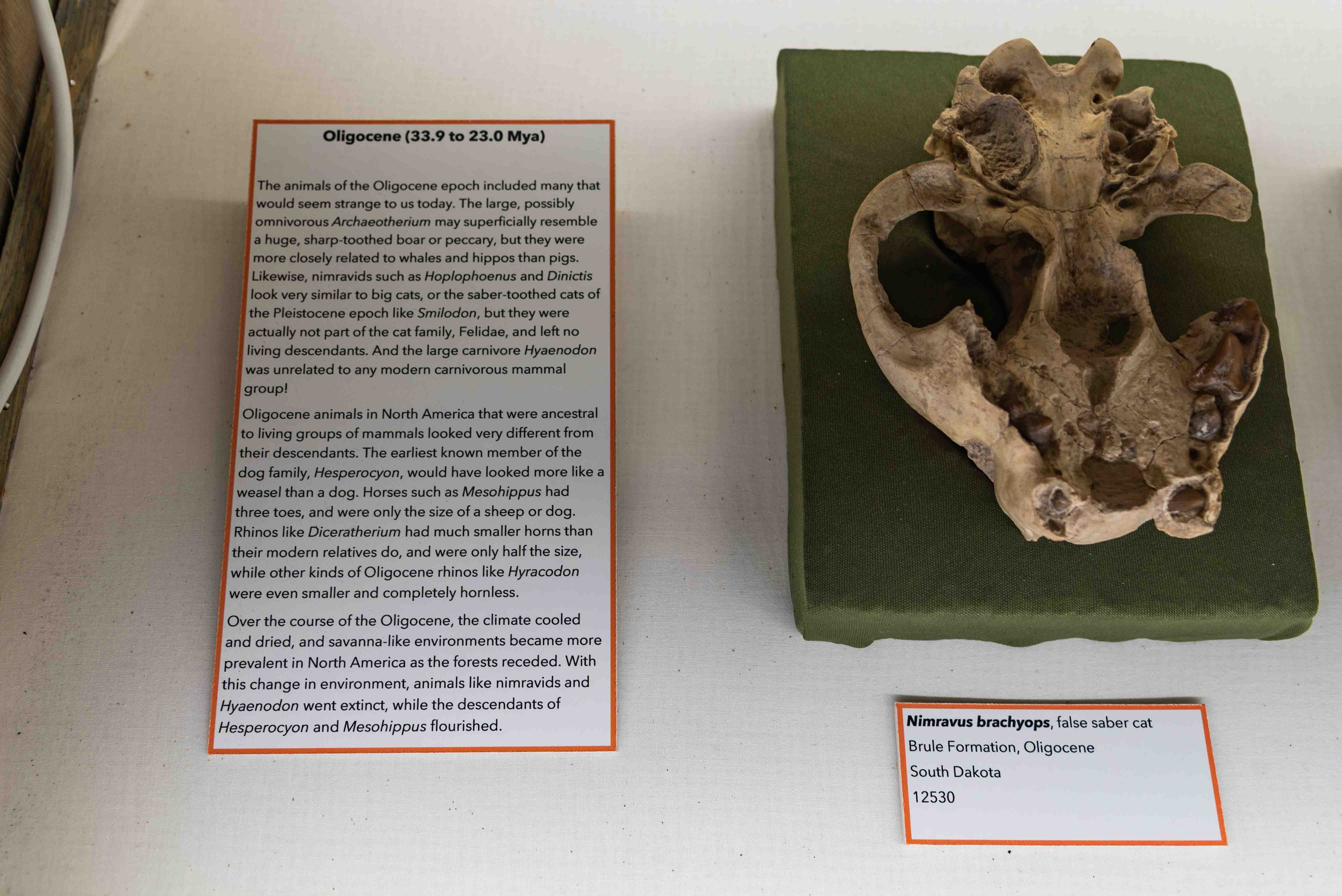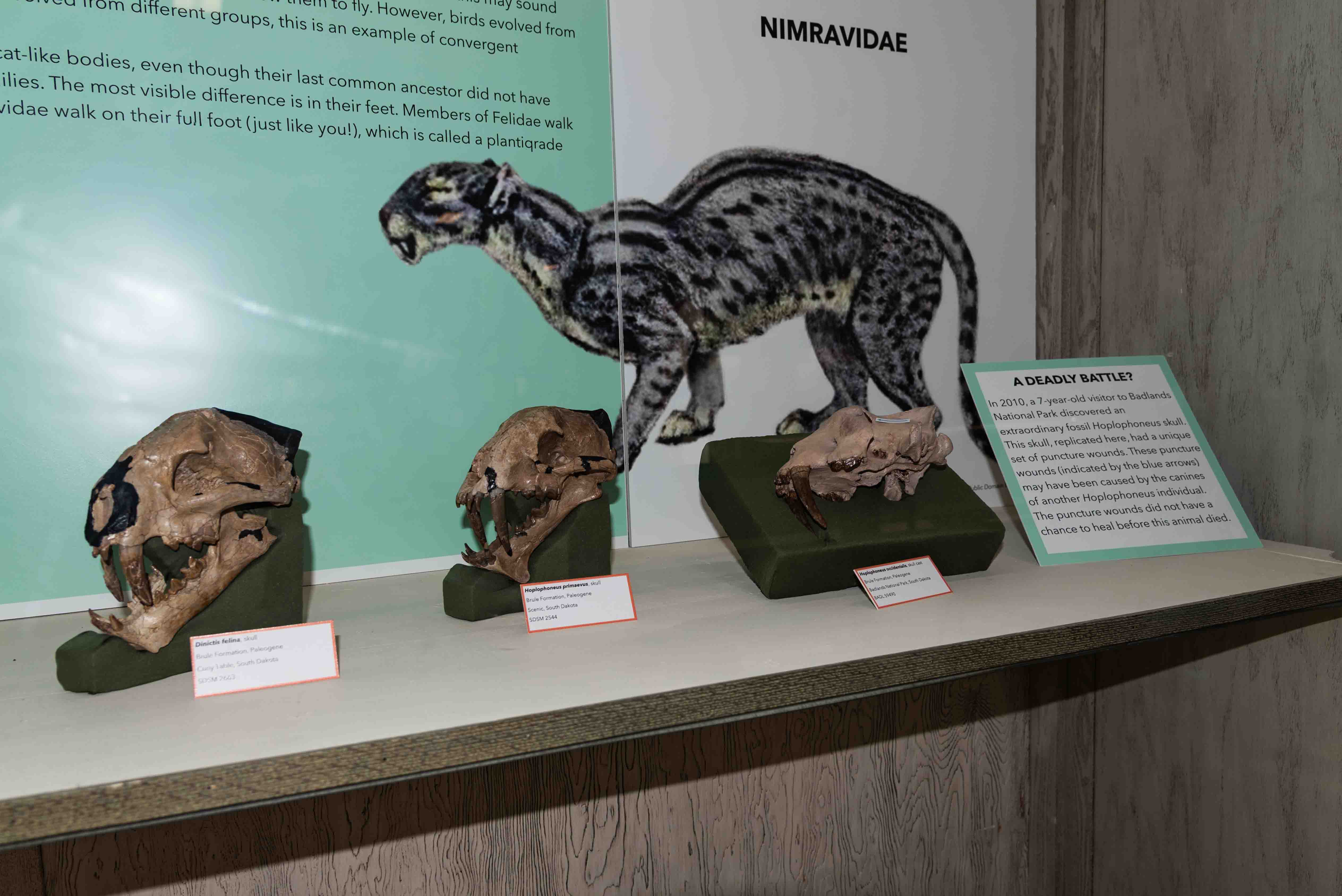 The fossils displayed in the museum belong primarily to the genus Nimravidae ("false saber cat").