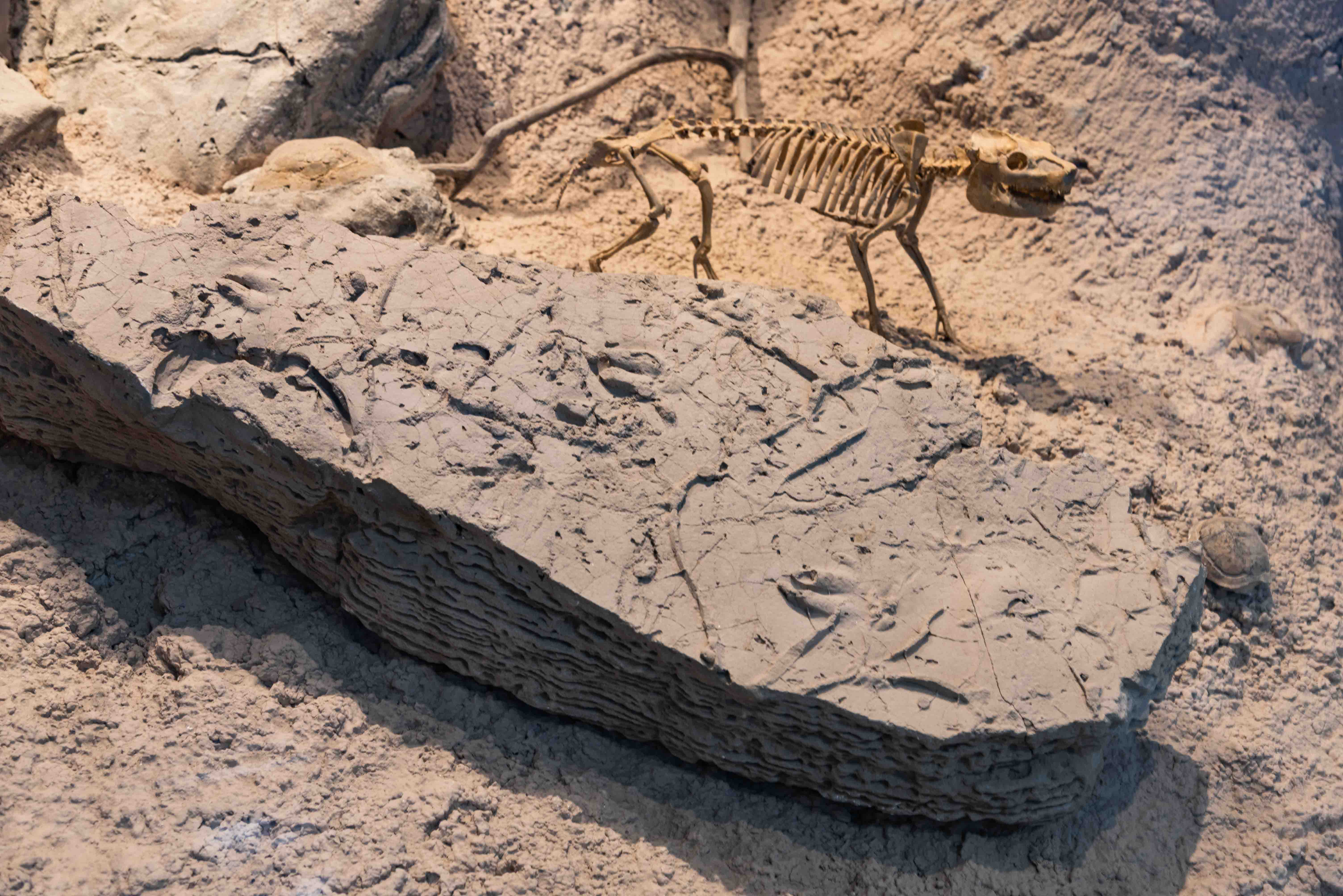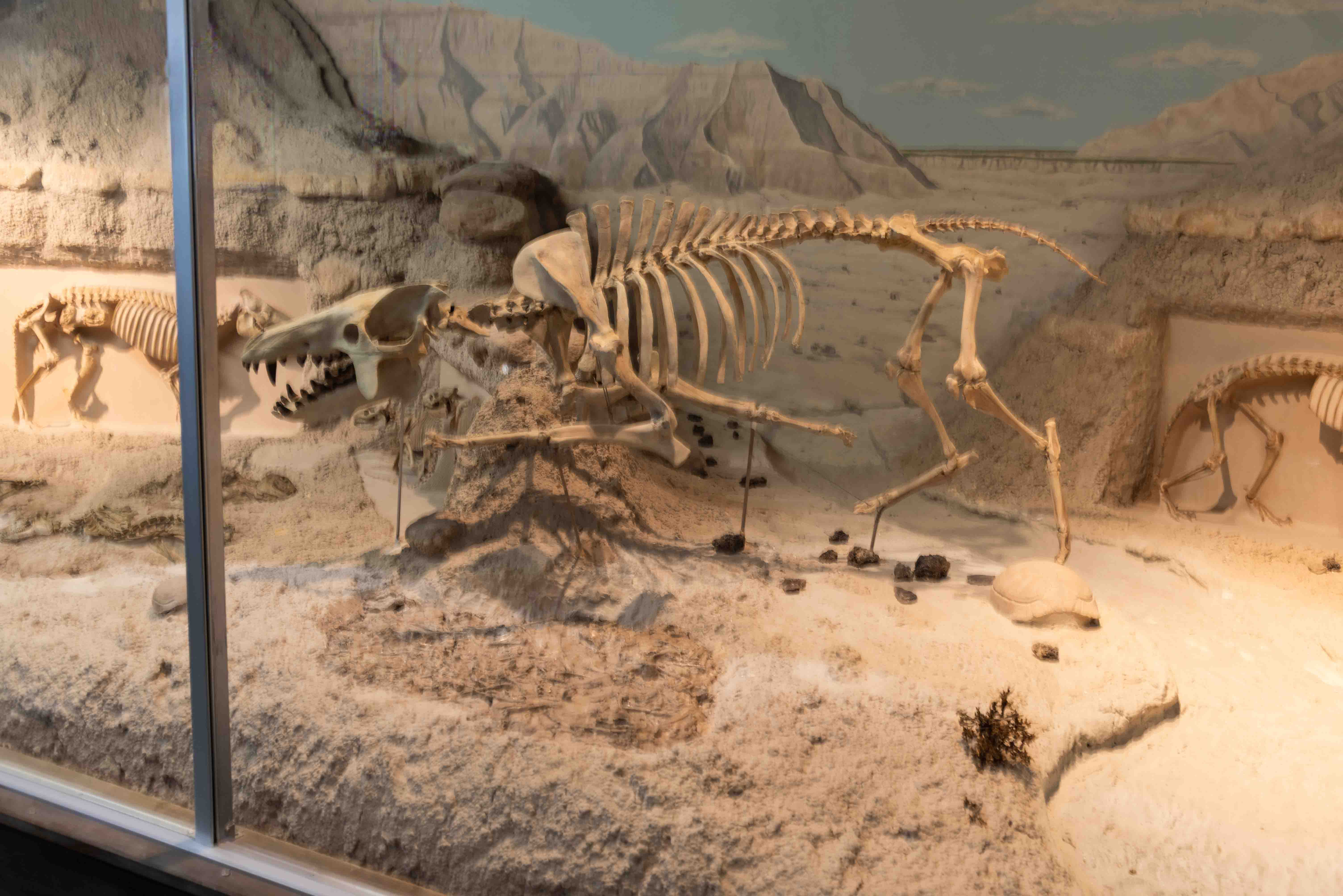 The Badlands Diorama displays complete fossil skeletons of fauna from the White River