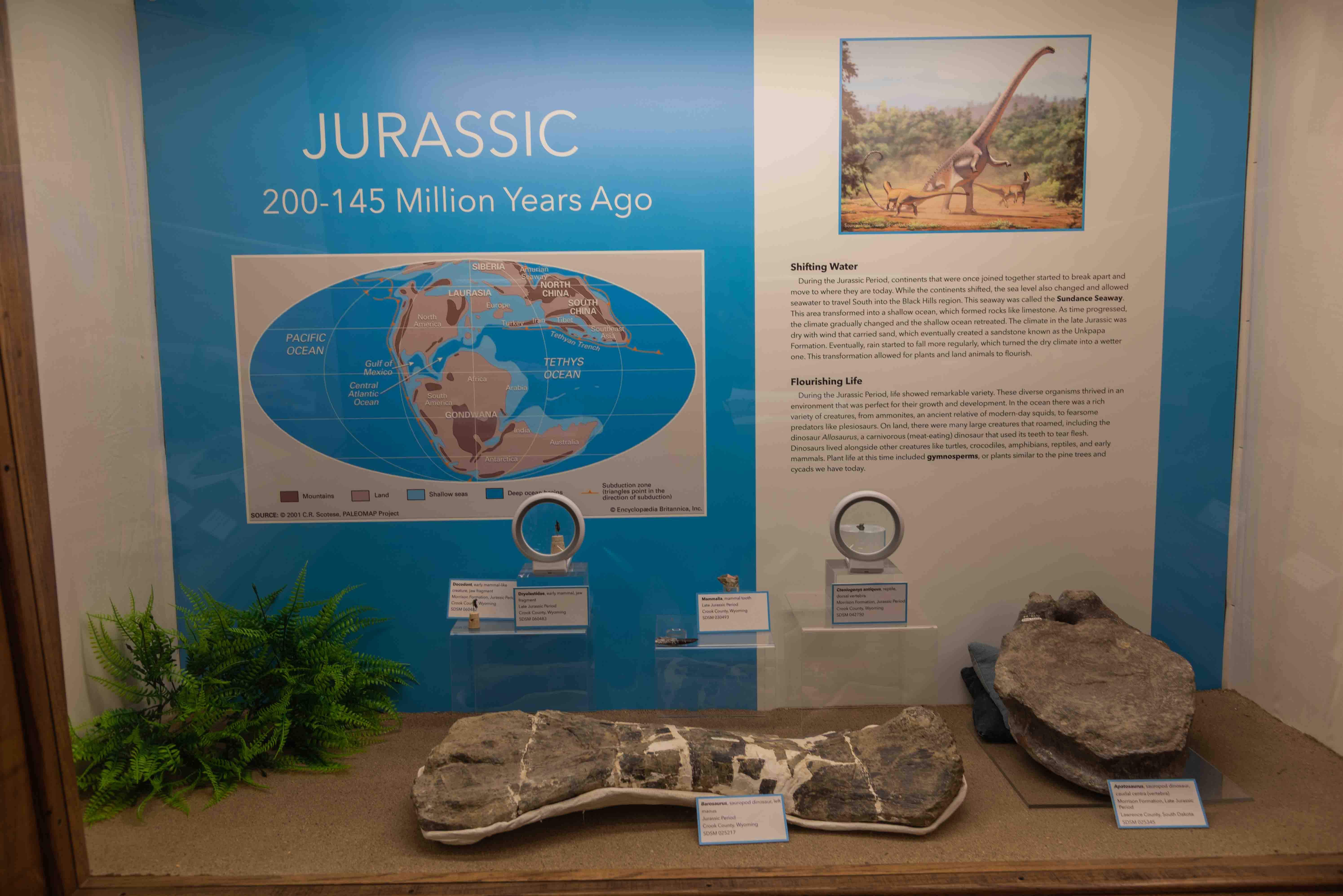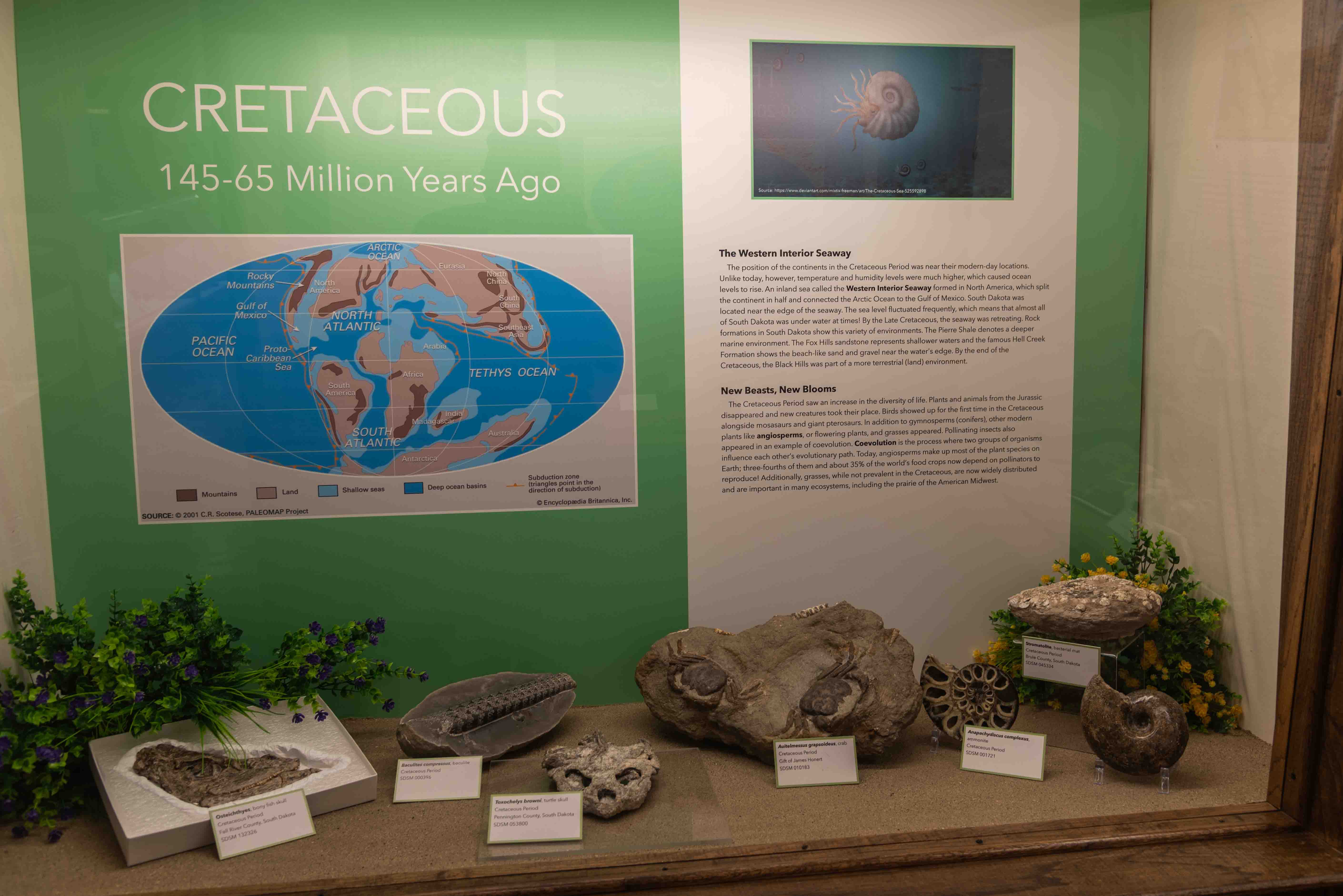 from the late Cretaceous to early Paleogene Periods. This is reflected in the museum's exhibits. It