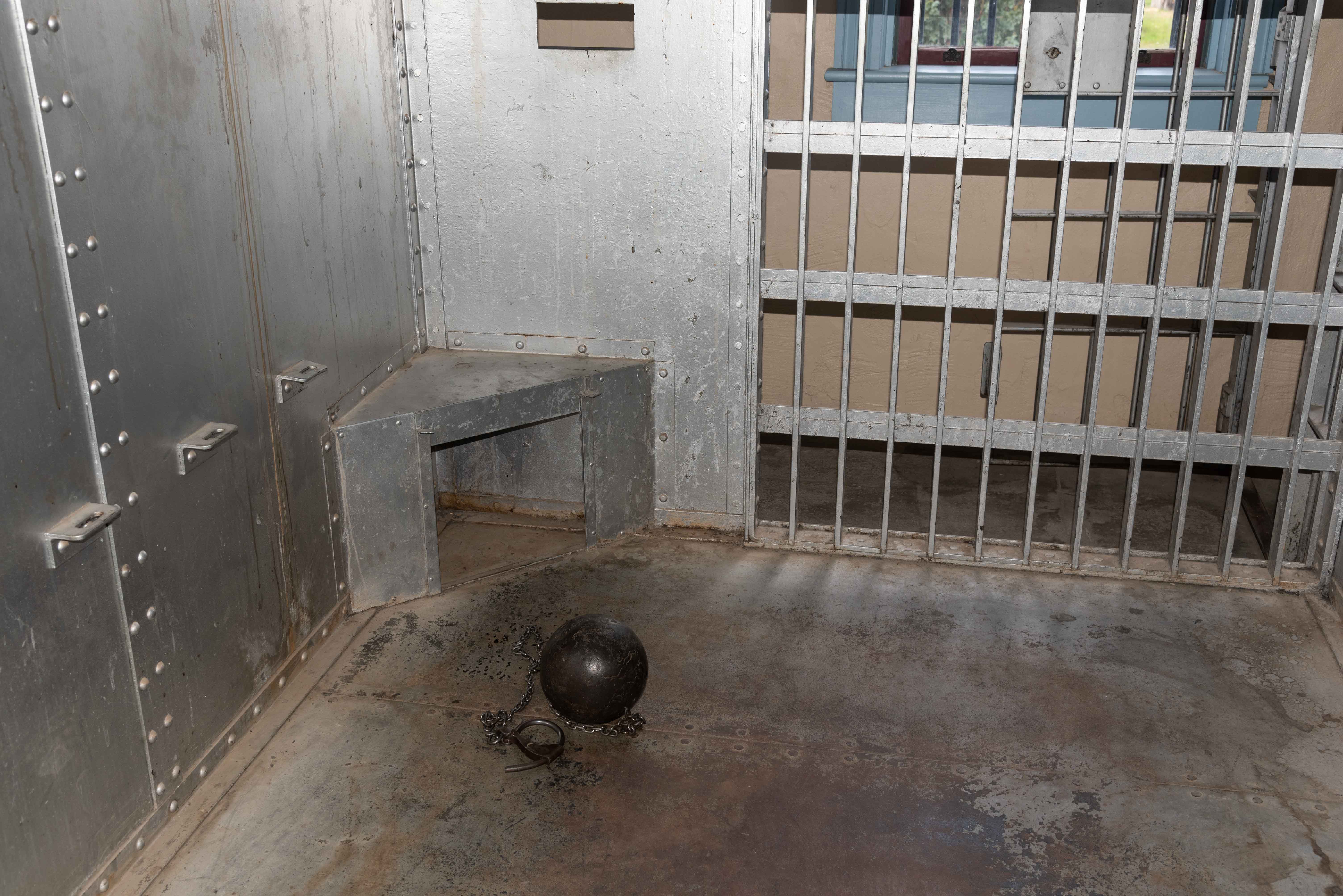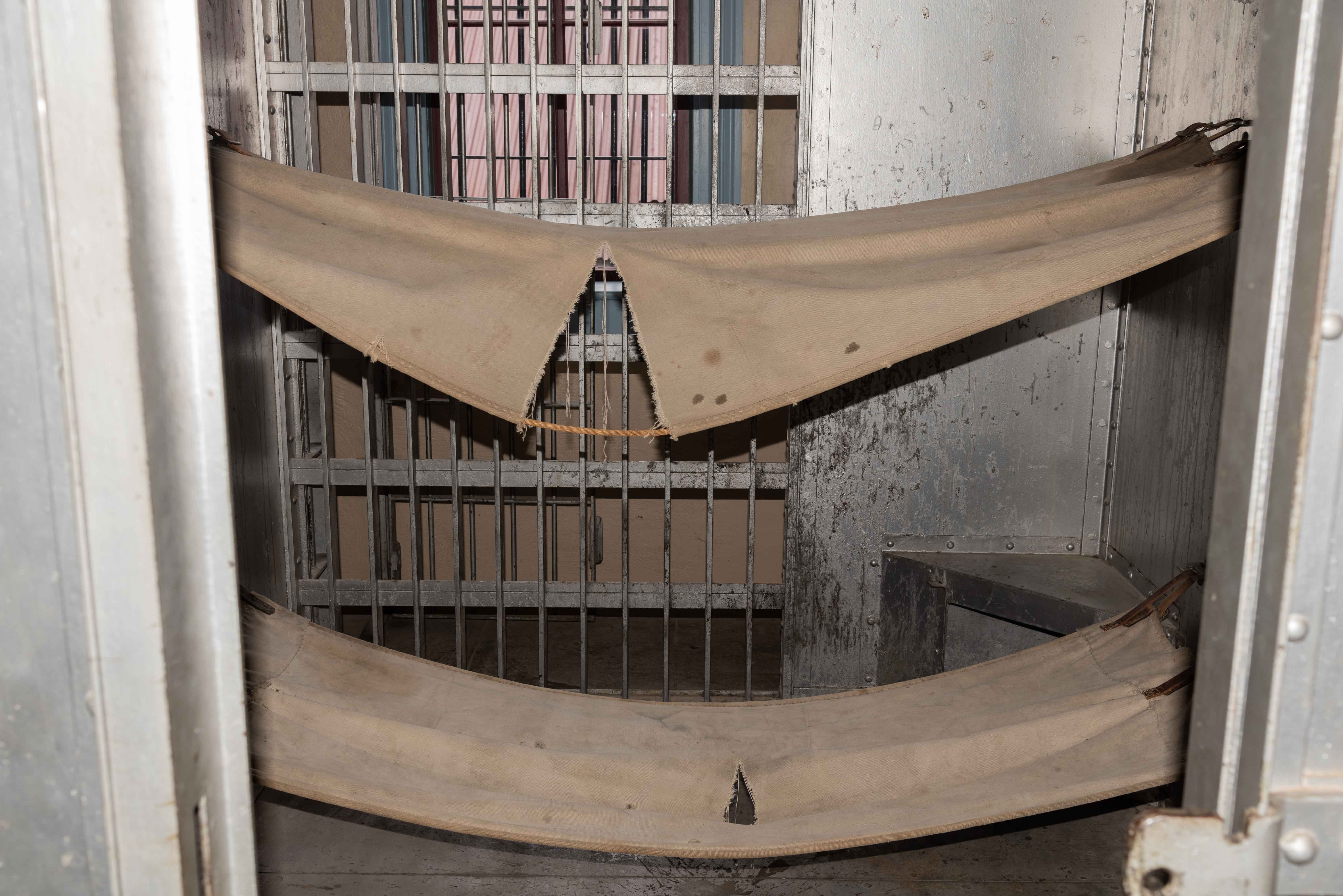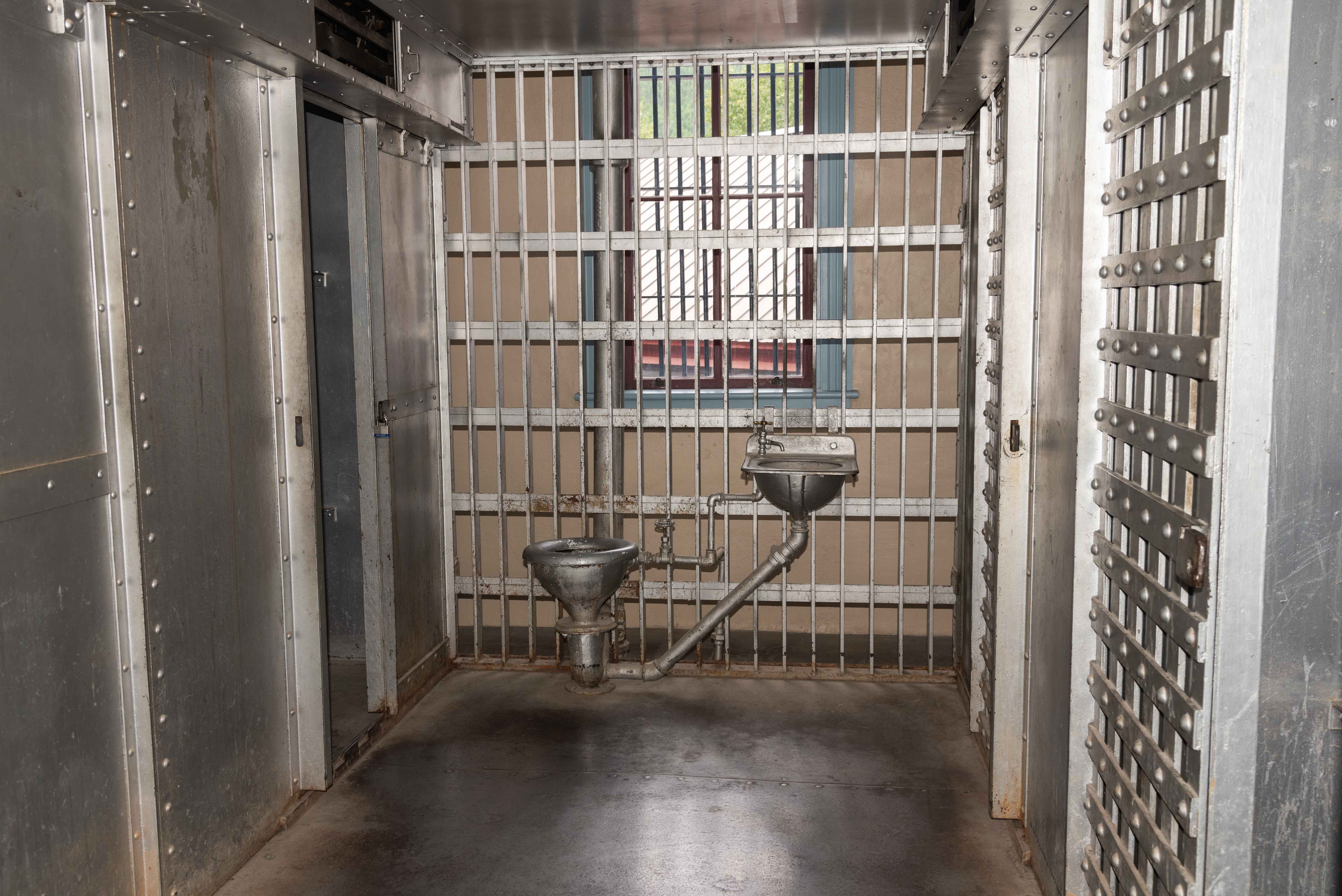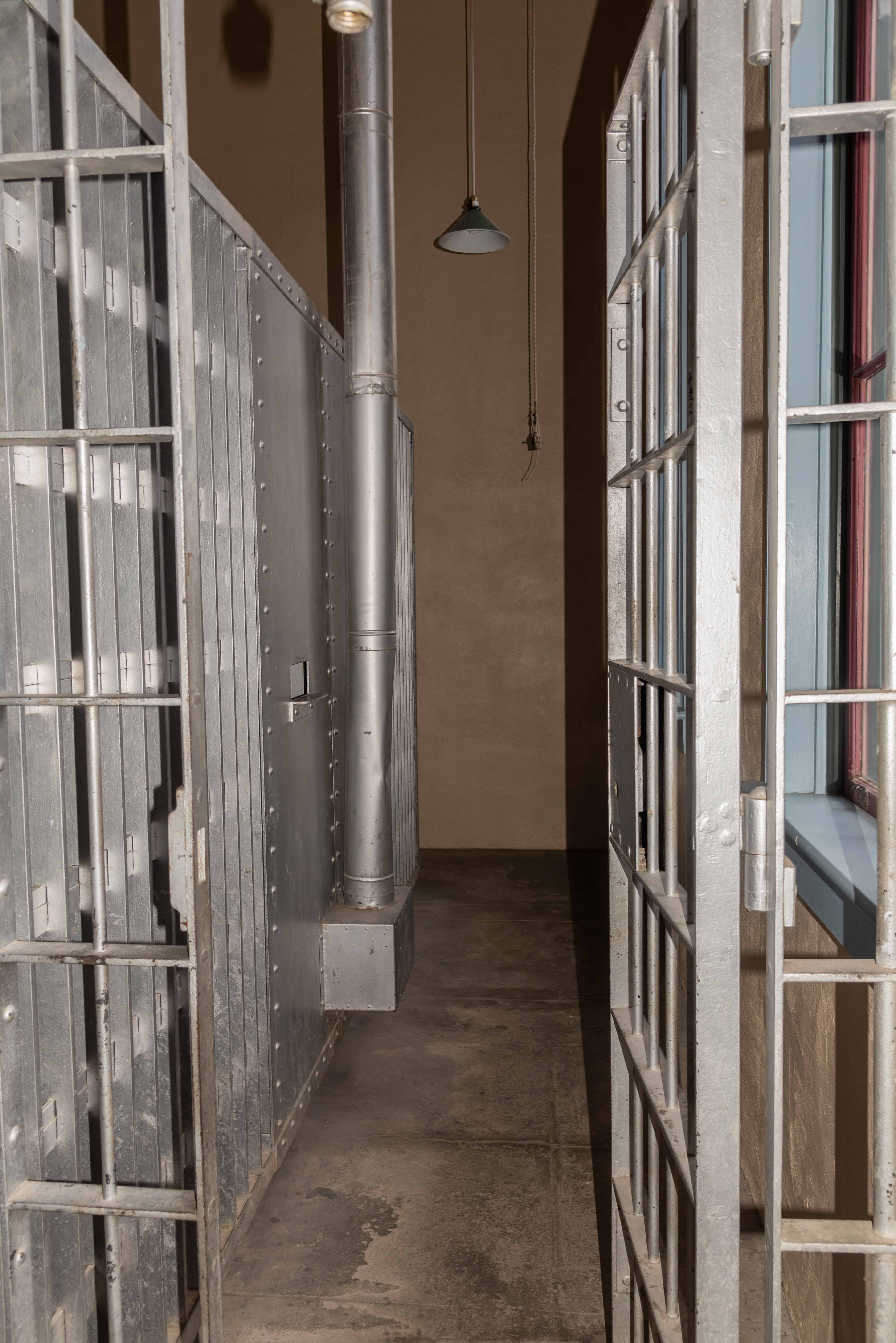 cell block of four cells is located on the second floor, and there are two cells on the