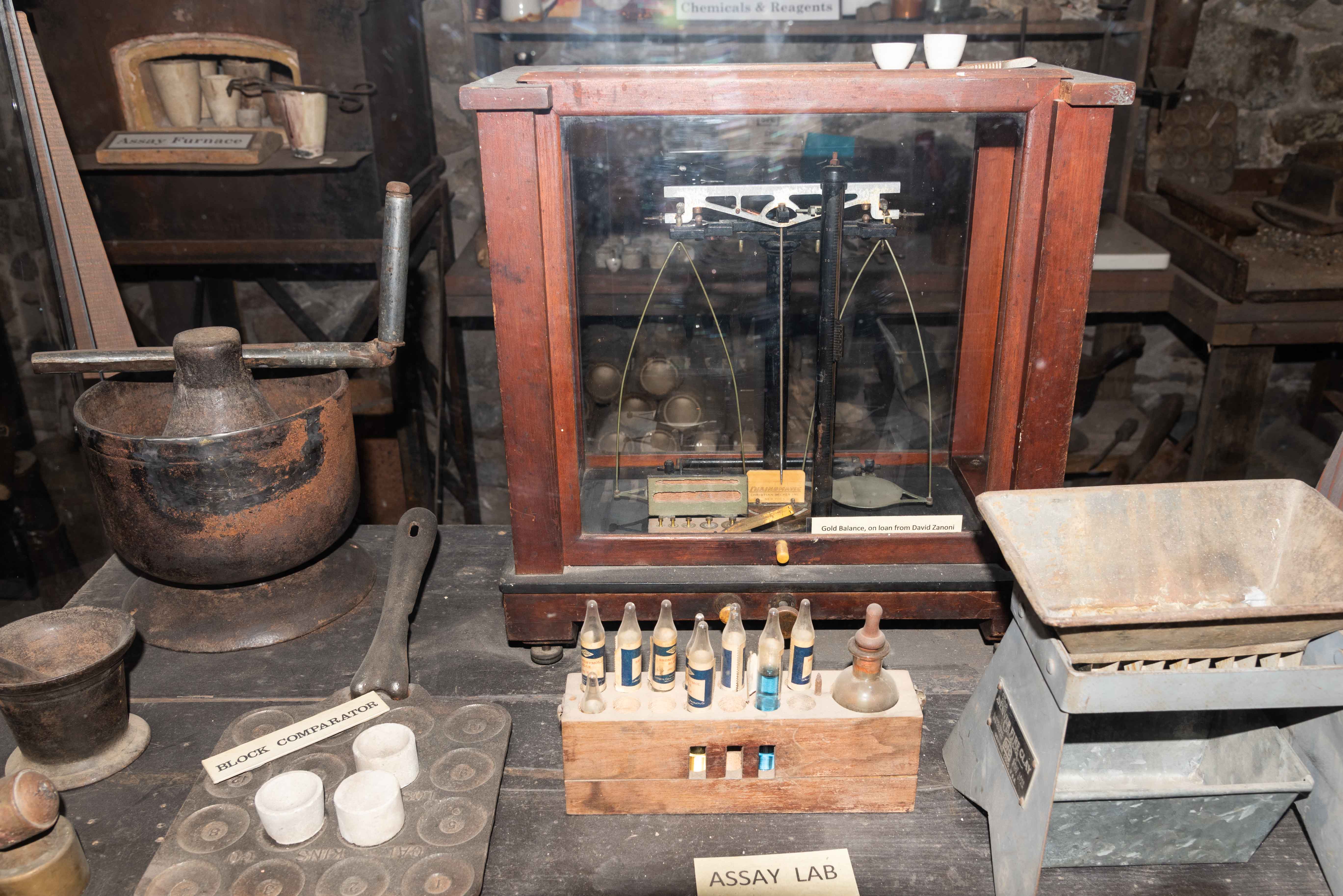 Metallurgy Assay Lab - Assaying of ores is divided into two general classes: fire assays for precious metals such as gold and silver, and wet, or chemical assays for other metals such as copper, lead, zinc, and iron. Most assayers in the early mining camps were usually assaying for only gold or silver. As mines started producing ores of copper, zinc, and lead, more complete metallurical assay labs were needed that could asssay for these metals, in addition to silver and gold.