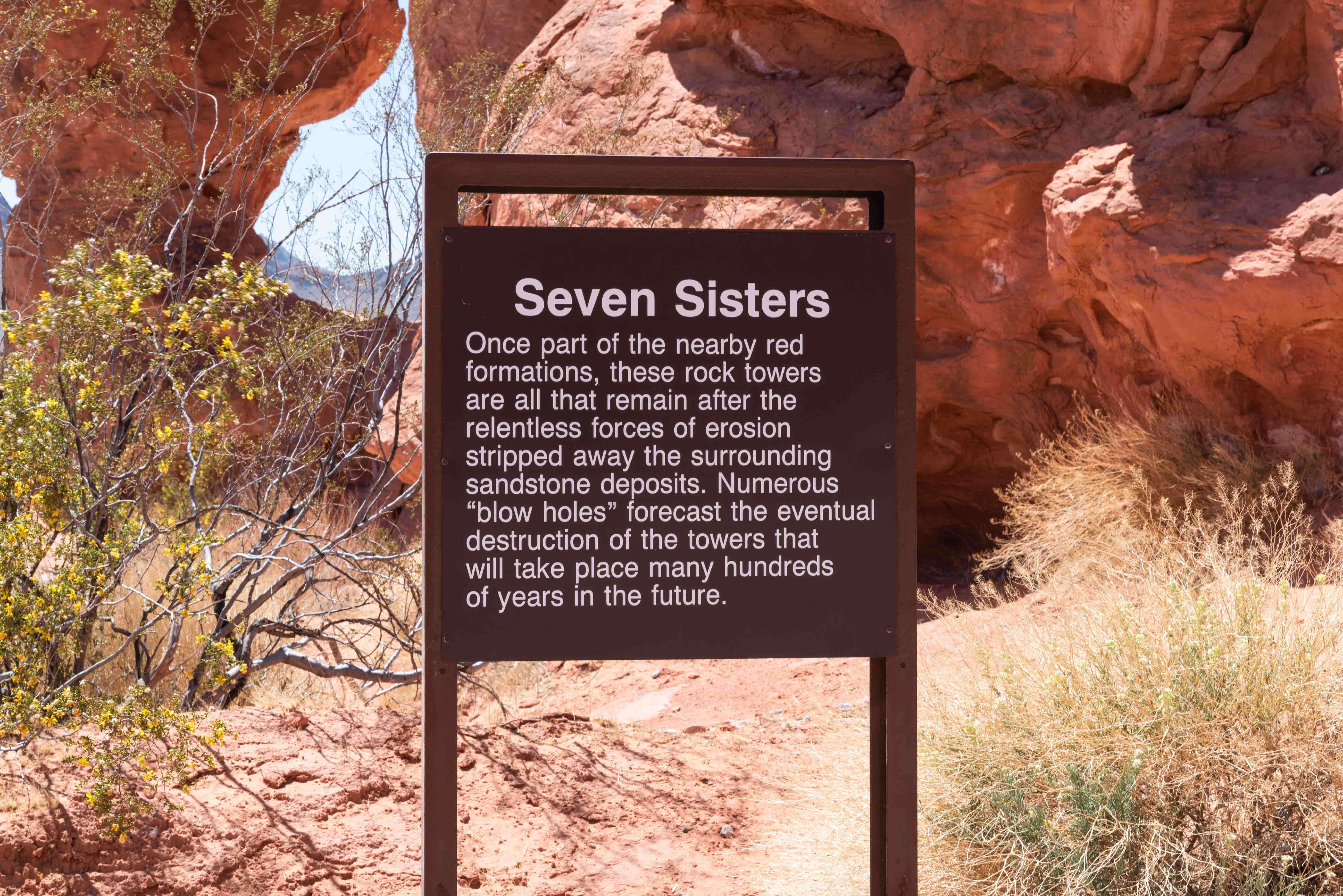 The Seven Sisters are a row of 7 red sandstone monoliths located right off the Valley of Fire