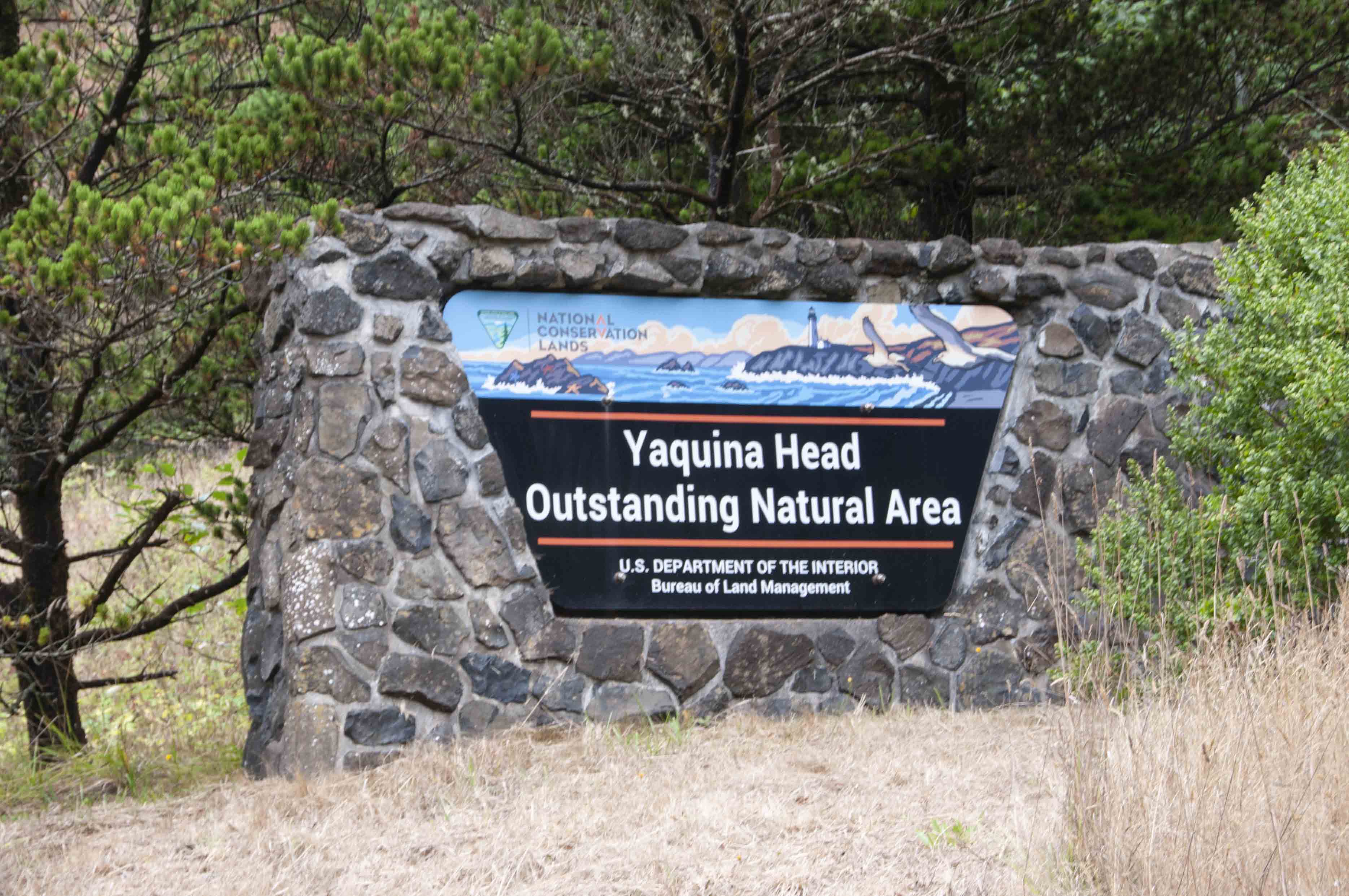 Yaquina Head is a headland extending one mile into the Pacific Ocean from the Oregon Coast. The United States Congress named the 95-acre headland the Yaquina Head Outstanding Natural Area in 1980. (Where do they come up with these names?) The area is administered by the Bureau of Land Management (BLM). There is a very nice interpretive center (pronounced museum) that features exhibits on seabirds, marine life, and human history of the headland. The headland is home to a large number of waterfowl, and the Yaquina Head Light (lighthouse) is located on its westernmost point.